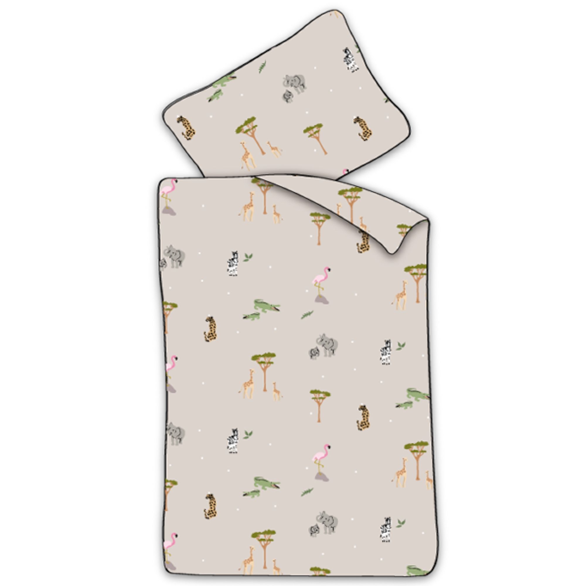 Junior sengetøj 100x140 cm - Beige sengesæt med safari dyr - 100% blødt bomulds sengelinned