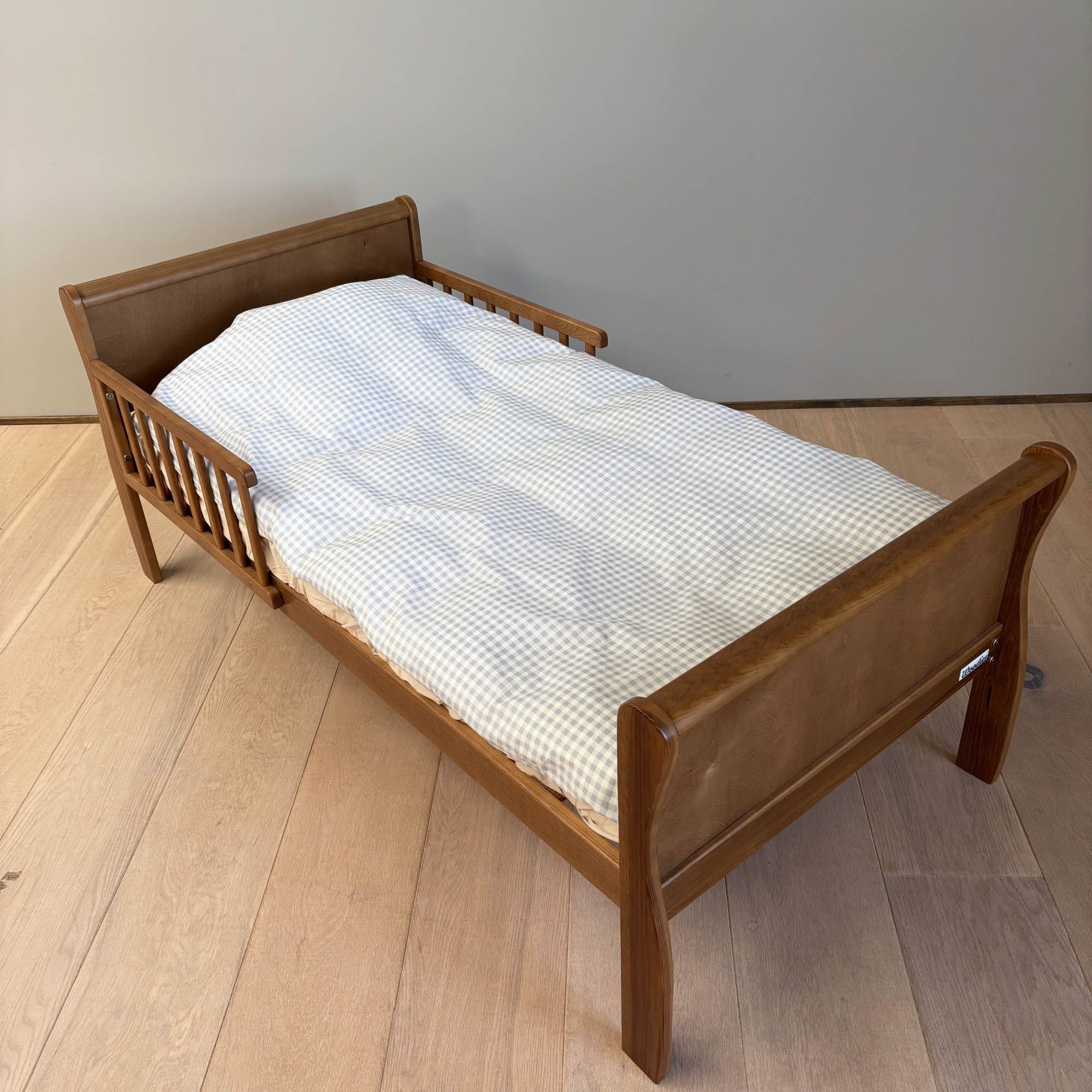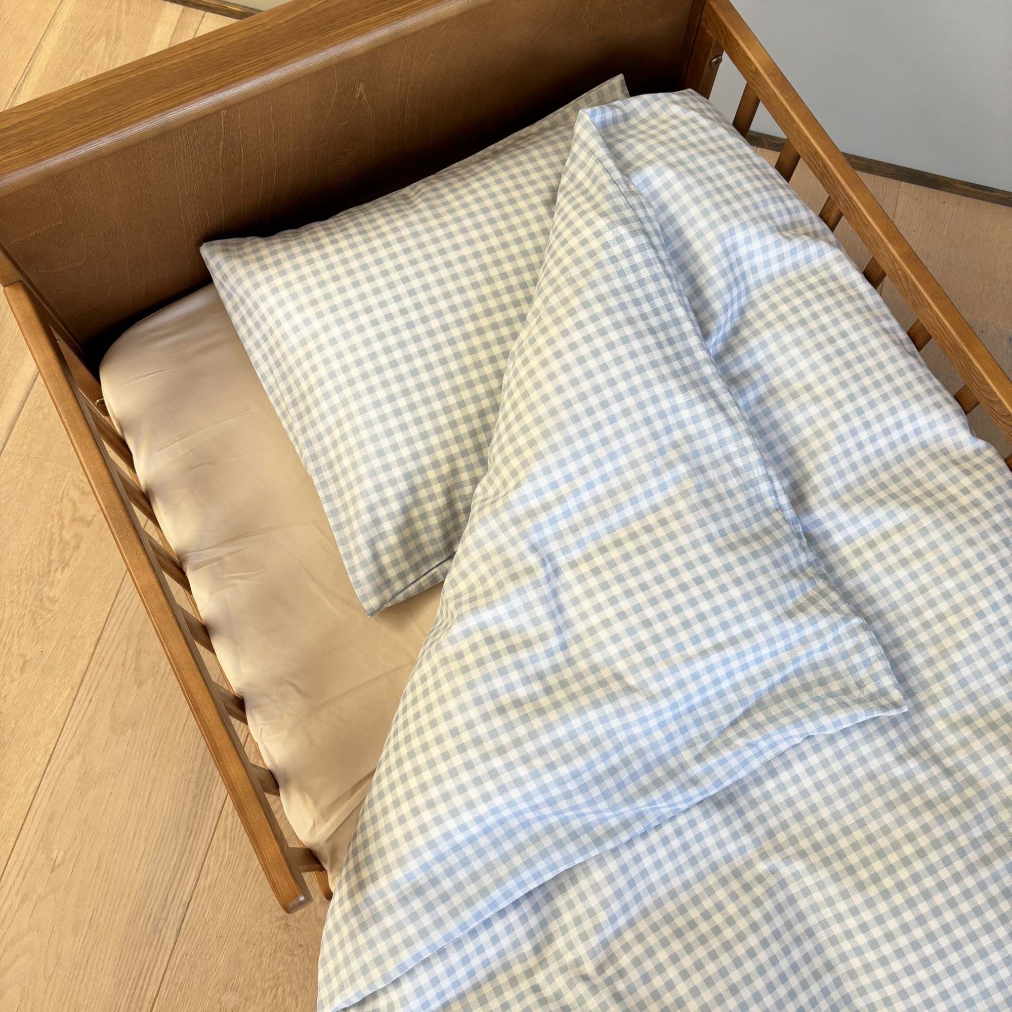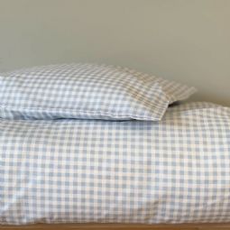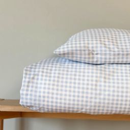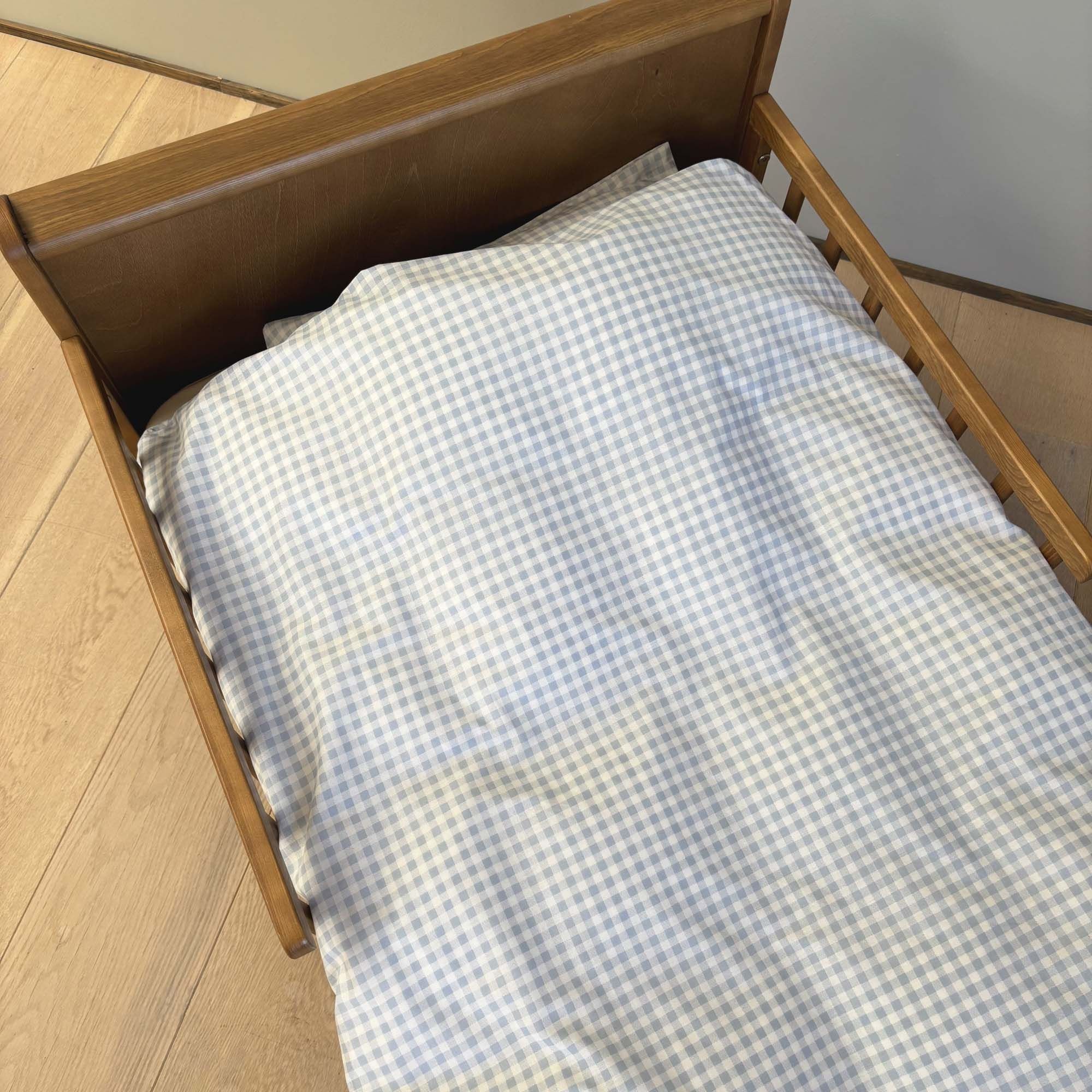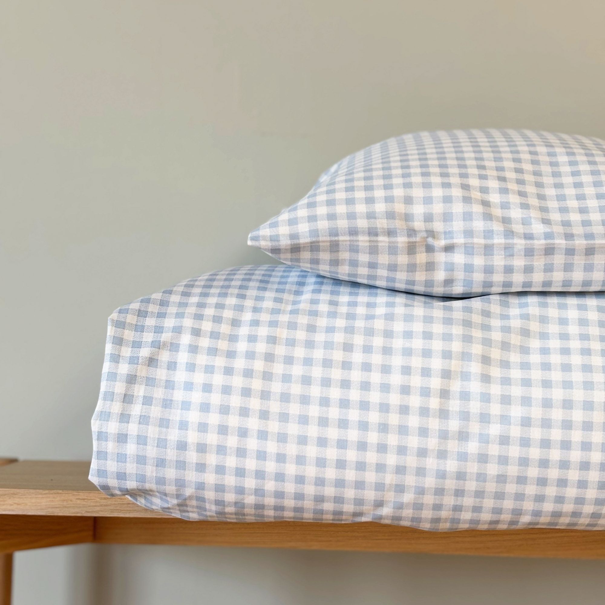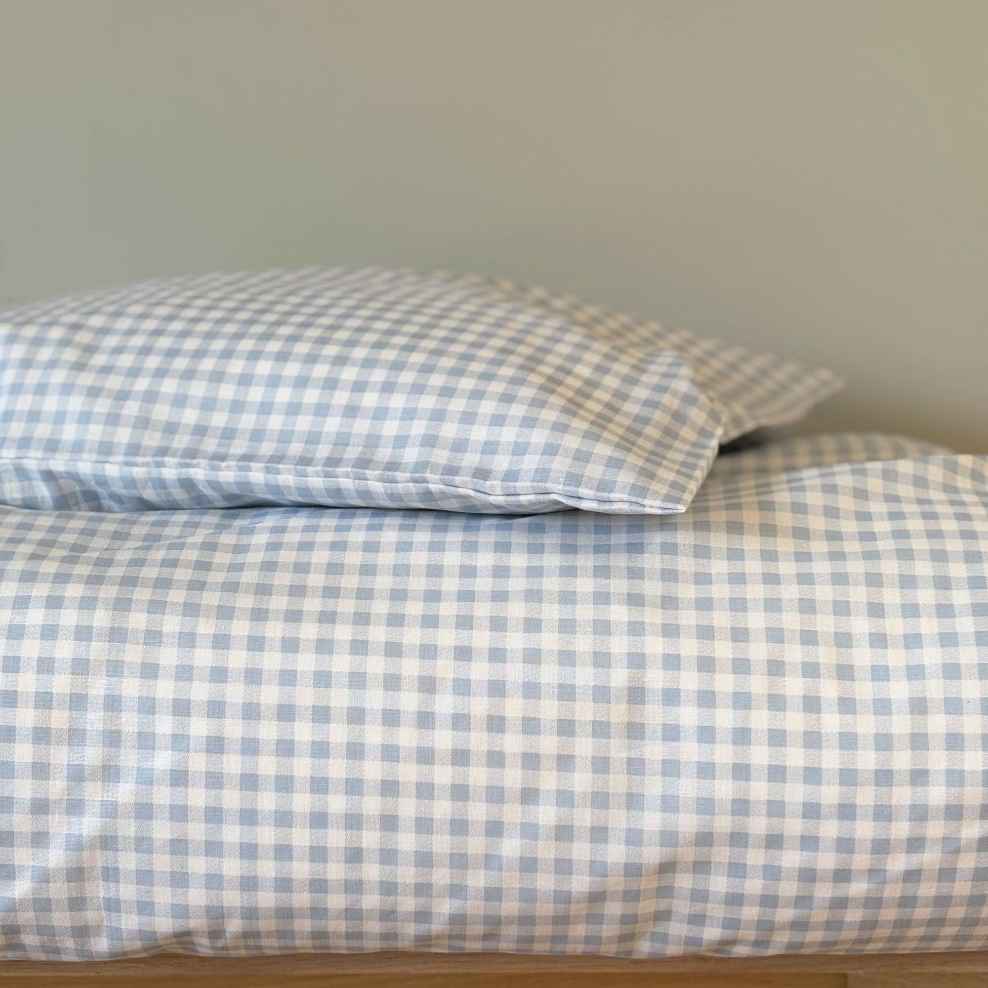 Blødt junior sengetøj i 100% bomuld, med tern. Produceret med lette og åndbare bomuldstråde som giver sengesættet en følelse af blødhed, der gør at dynen føles dejlig for dit barn at sove med. Balancen i naturlig egenskaber og komfort fra det bløde materiale, kombineret med det hyggelige design, gør dette sæt til en sikker favorit hos dit barn.
