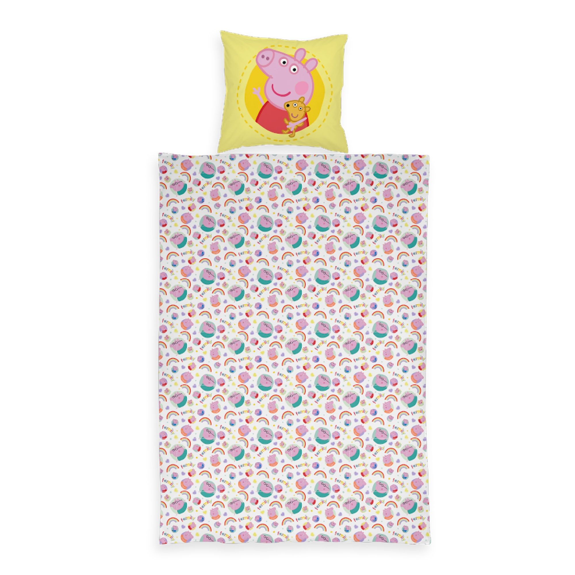 Junior sengetøj 100x140 cm - Vendbart sengesæt med Gurli Gris, Gustav Gris og Evie Gris - 100% bomulds sengelinned