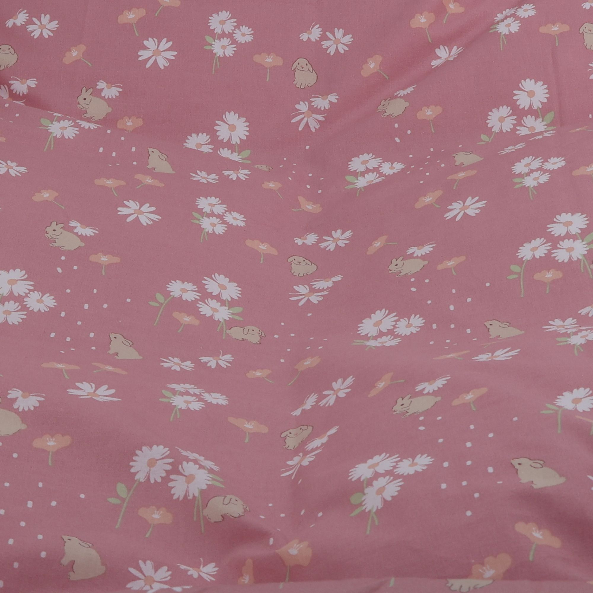 Kanin sengetøj - 100% bomuld - Baby sengetøj 70x100 cm - Lyserød