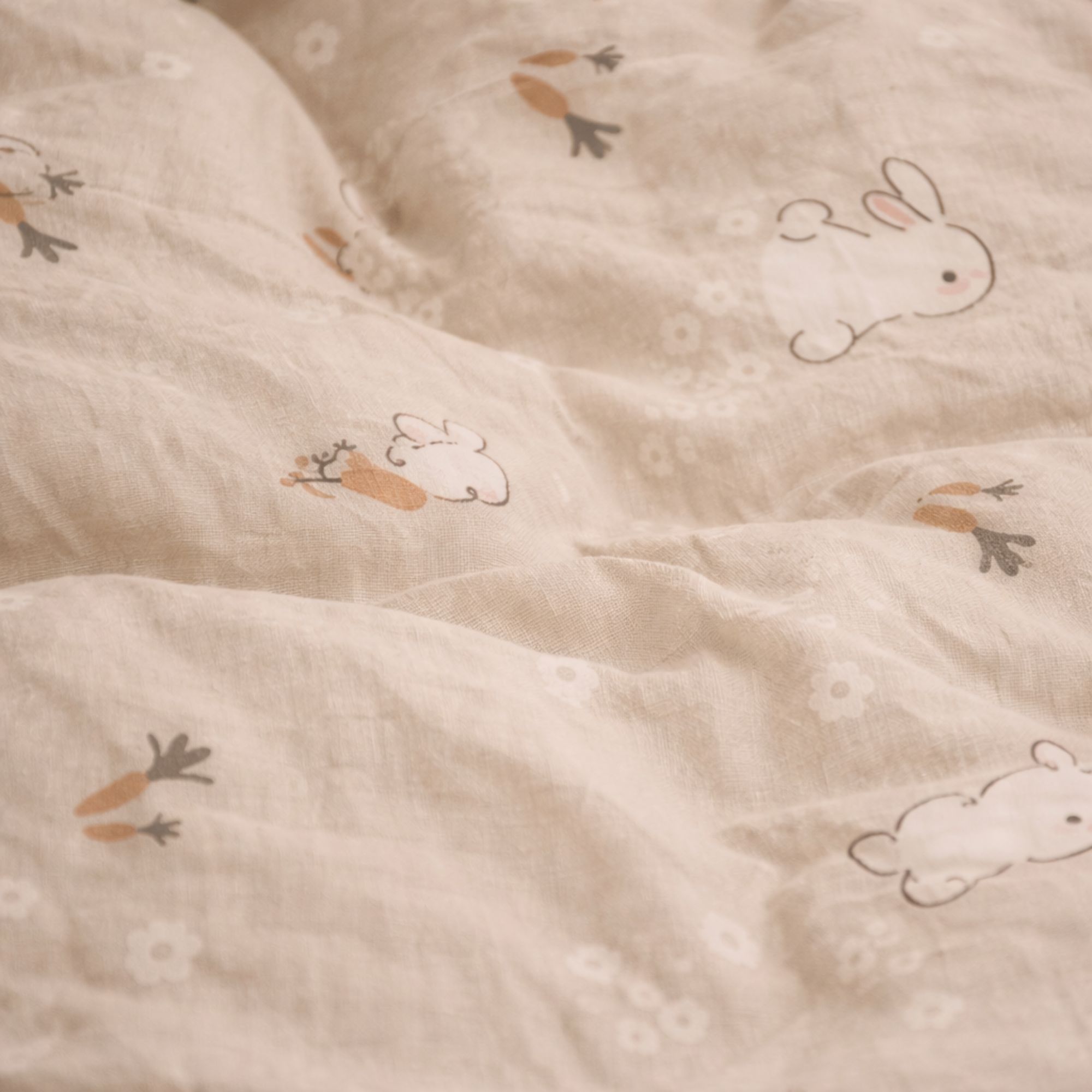 Kanin sengetøj - 100% bomuld - Baby sengetøj 70x100 cm - Beige