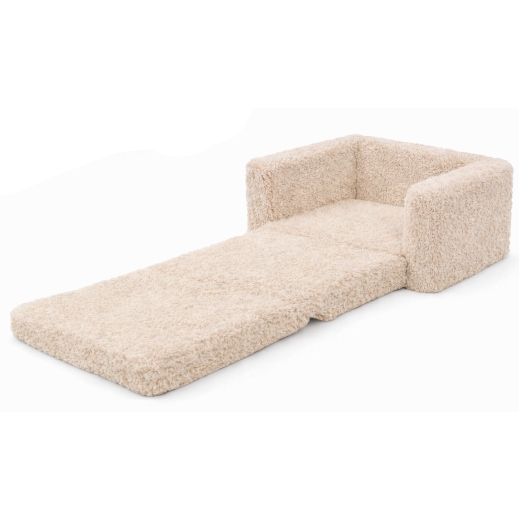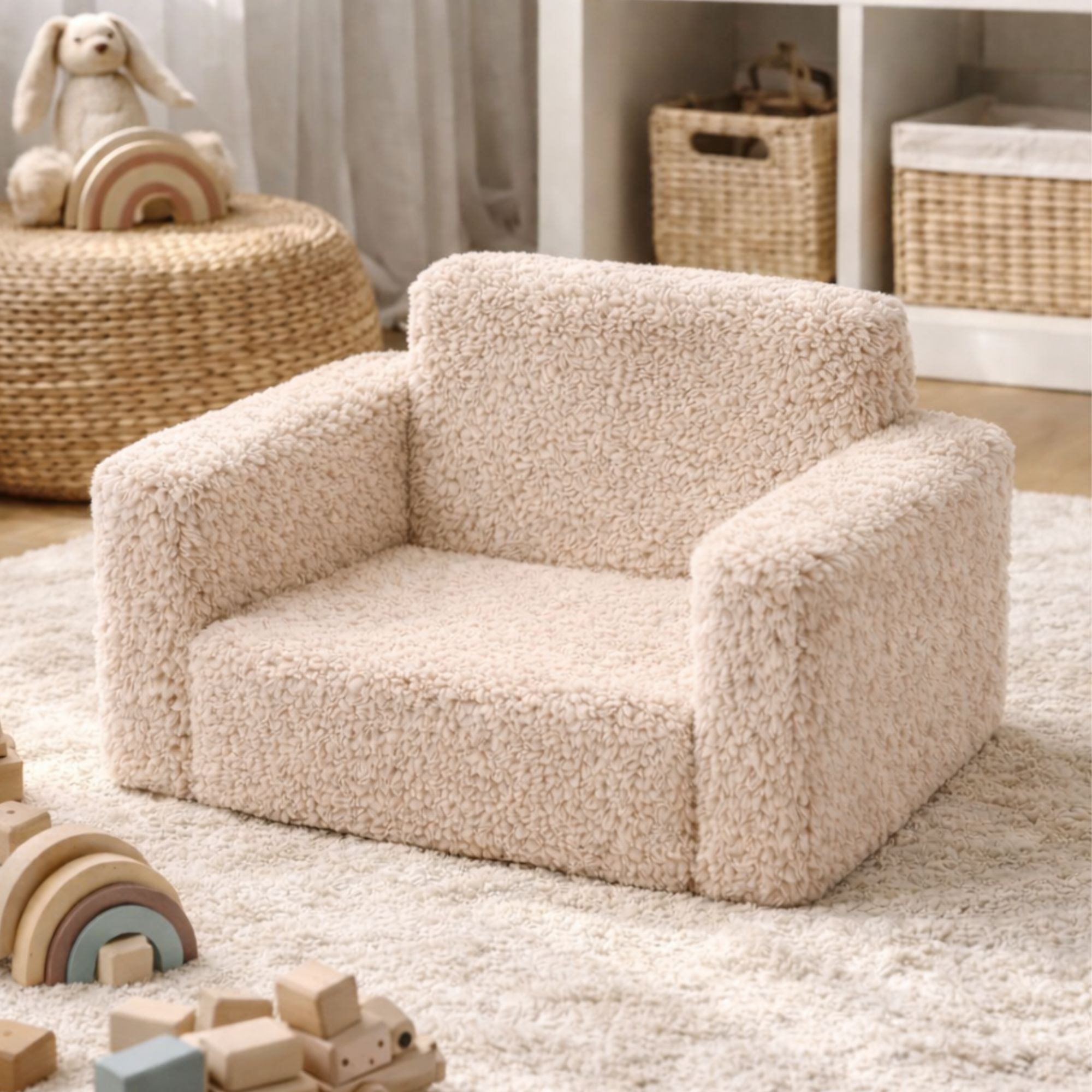 Denne utrolig bløde foldestol til børn er designet med fokus på komfort, samt at opnå flere funktioner i et produkt. Når stolen er sammenfoldet, fungerer den som en hyggelig lille lænestol i børnehøjde. Når den foldes ud, bliver den til en mini-madras, som kan bruges til leg, afslapning eller overnattende legekammerater. Det gør den til et oplagt valg til både børneværelset og stuen.