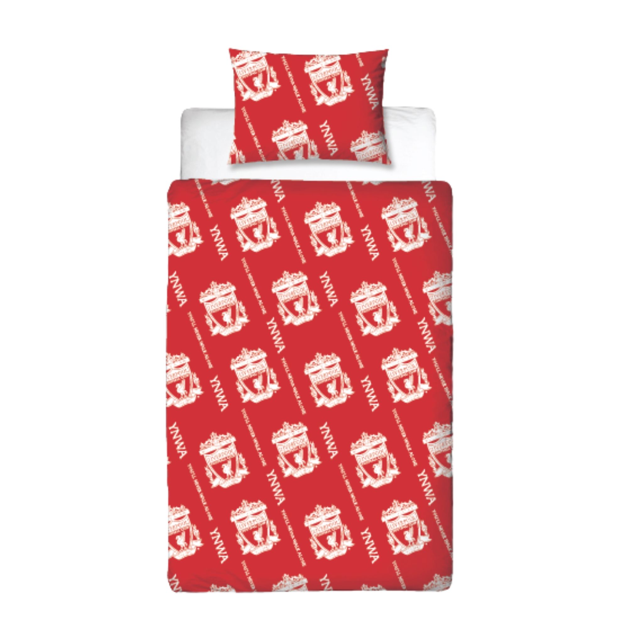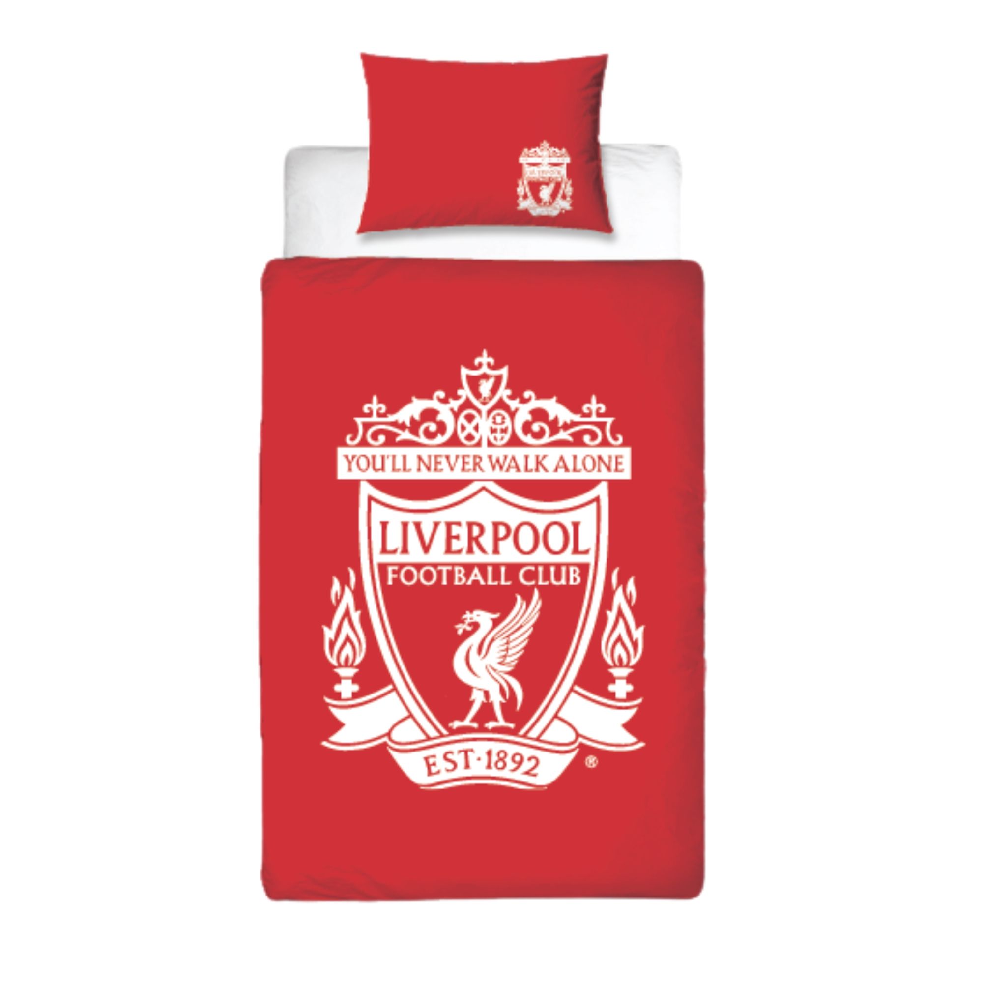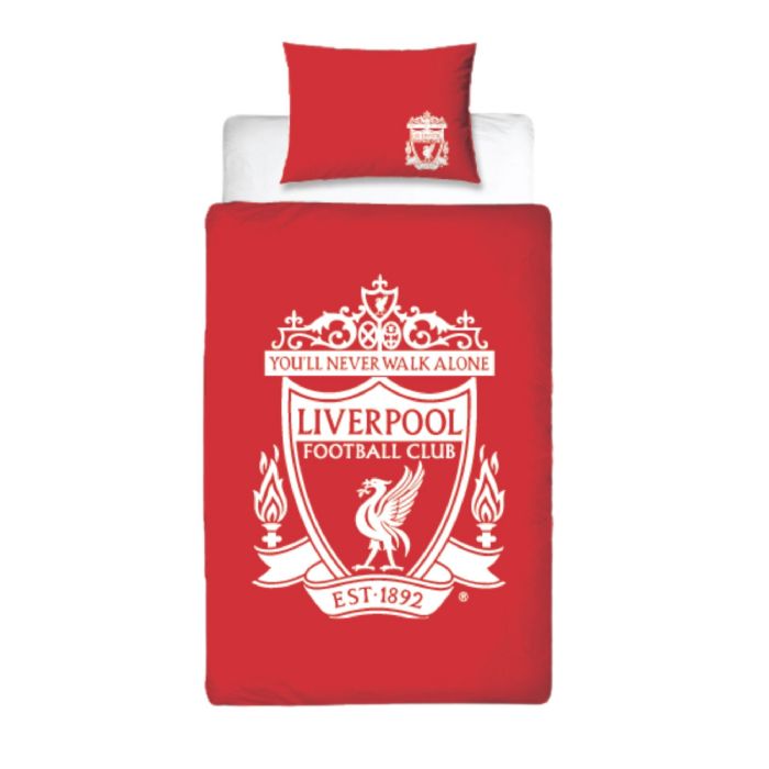 Liverpool sengetøj - Rødt vendbart sengesæt med logo - 100% bomulds sengelinned - Fodbold sengetøj