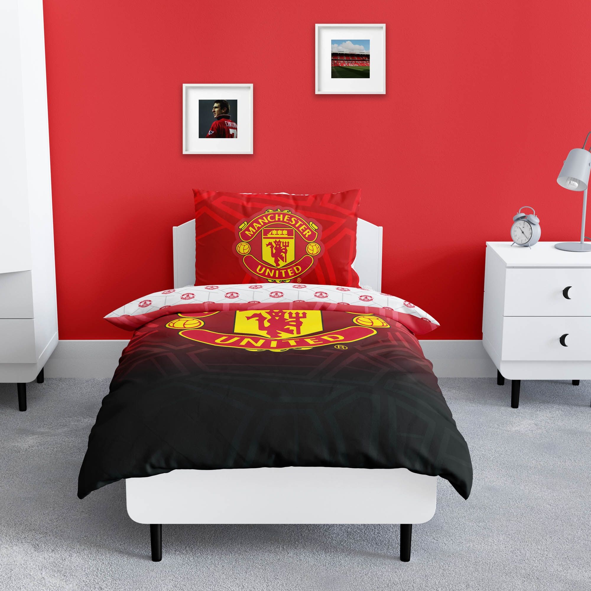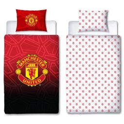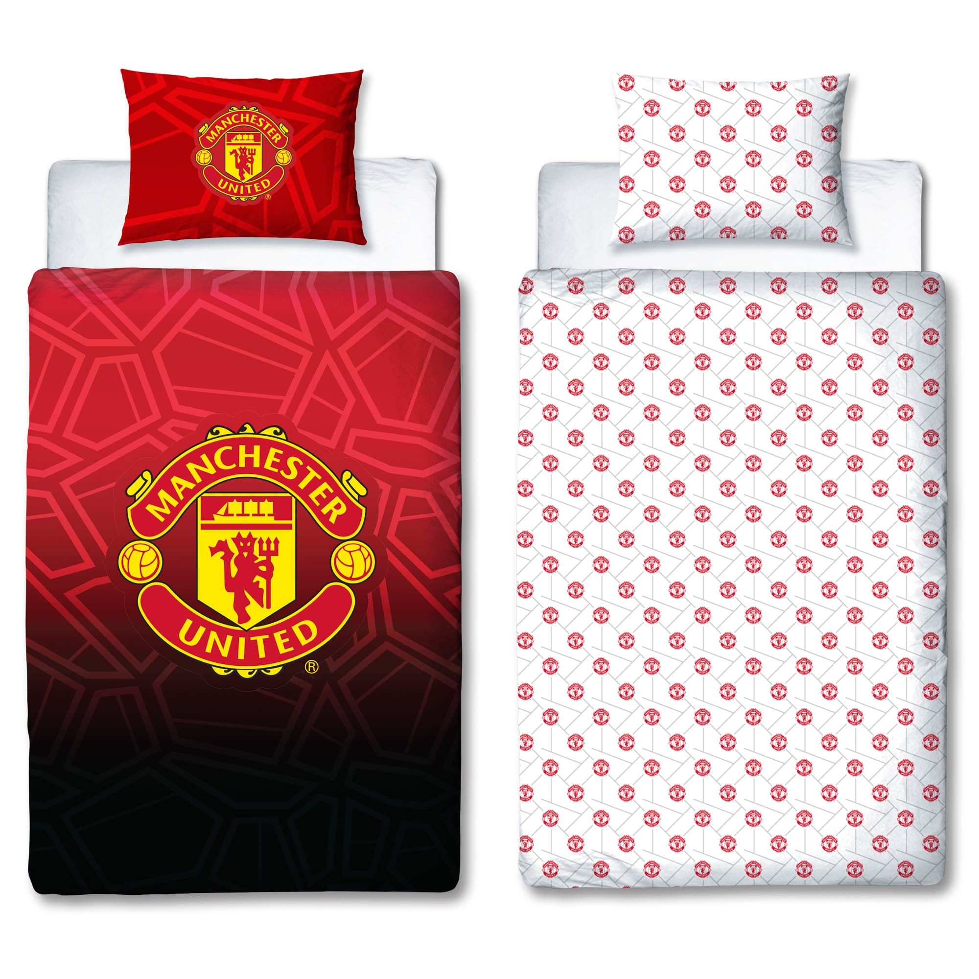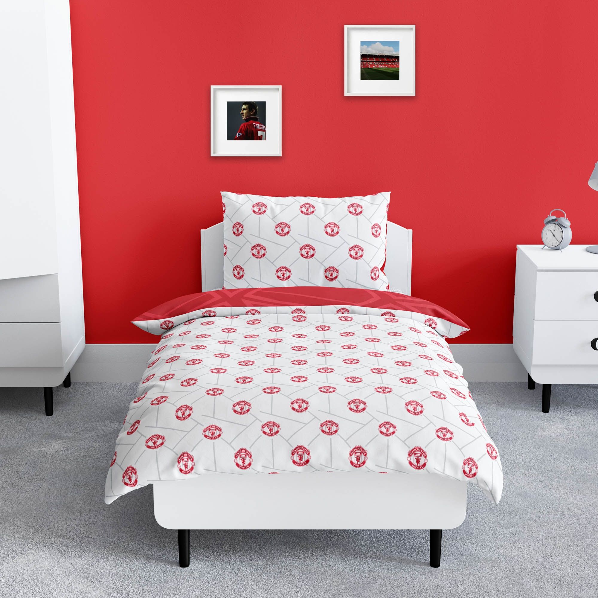 Manchester United sengetøj - Rødt vendbart sengesæt med logo - 140x200 cm - 100% bomulds sengelinned - Fodbold sengetøj