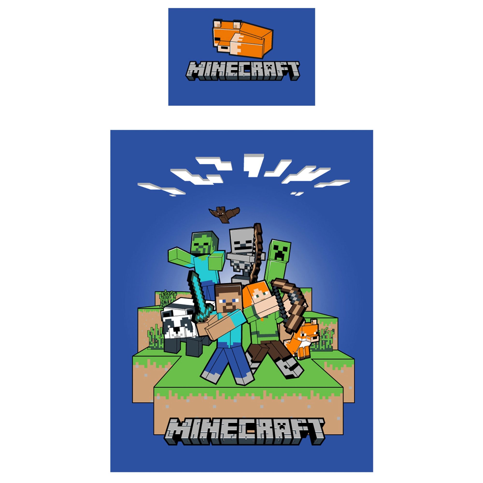 Motiv: Vendbart design - forside med motiv af de ikoniske Minecraft figurer, bagside med mini motiv