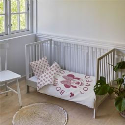 Gør sengetid ekstra hyggelig med dette Minnie Mouse junior sengetøj. Sengesættet er i 100% blødt bomuld, hvilke sikrer en god komfort hele natten. Materialet er åndbart, slidstærkt og holder farverne flotte - selv efter mange vaske. Sengetøjet er perfekt til børn, der elsker Minnie Mouse med hendes fine sløjfe og charmerende smil. Sengetøjet er i en flot farve med et skønt motiv af Minnie og teksten Born To Be Loved på forsiden. På bagsiden er der et overall print af små motiver af Minnie Mouse. Sengesættet er OEKO-TEX® certificeret og testet fri for skadelige stoffer, så dit barn trygt kan sove med det hver nat.
