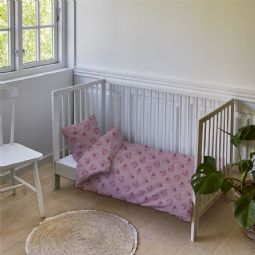 Blødt baby sengetøj i 100% bomuld, med et smart og genkendeligt design af Minnie Mouse. Produceret med lette og åndbare bomuldsfibre giver en sengesættet en følelse af blødhed, som gør at dynen vil falde natuligt rundt om dit barn. Balancen i naturlig komfort fra det bløde materiale og det hyggelige overall print af Minnie, gør dette sæt til en sikker favorit hos dit barn.