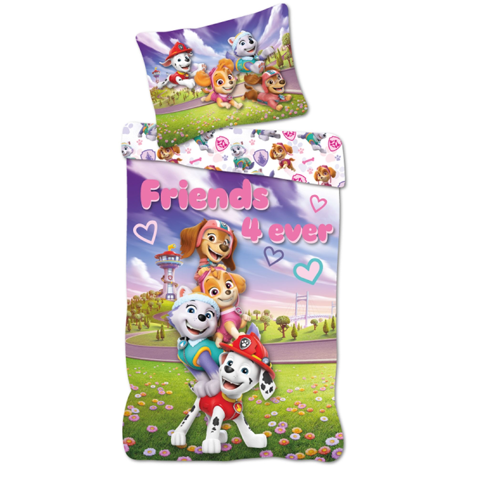 Paw Patrol sengetøj 140x200 cm - Vendbart sengesæt med Paw Patrol - Friends 4 ever - 100% bomulds sengelinned