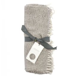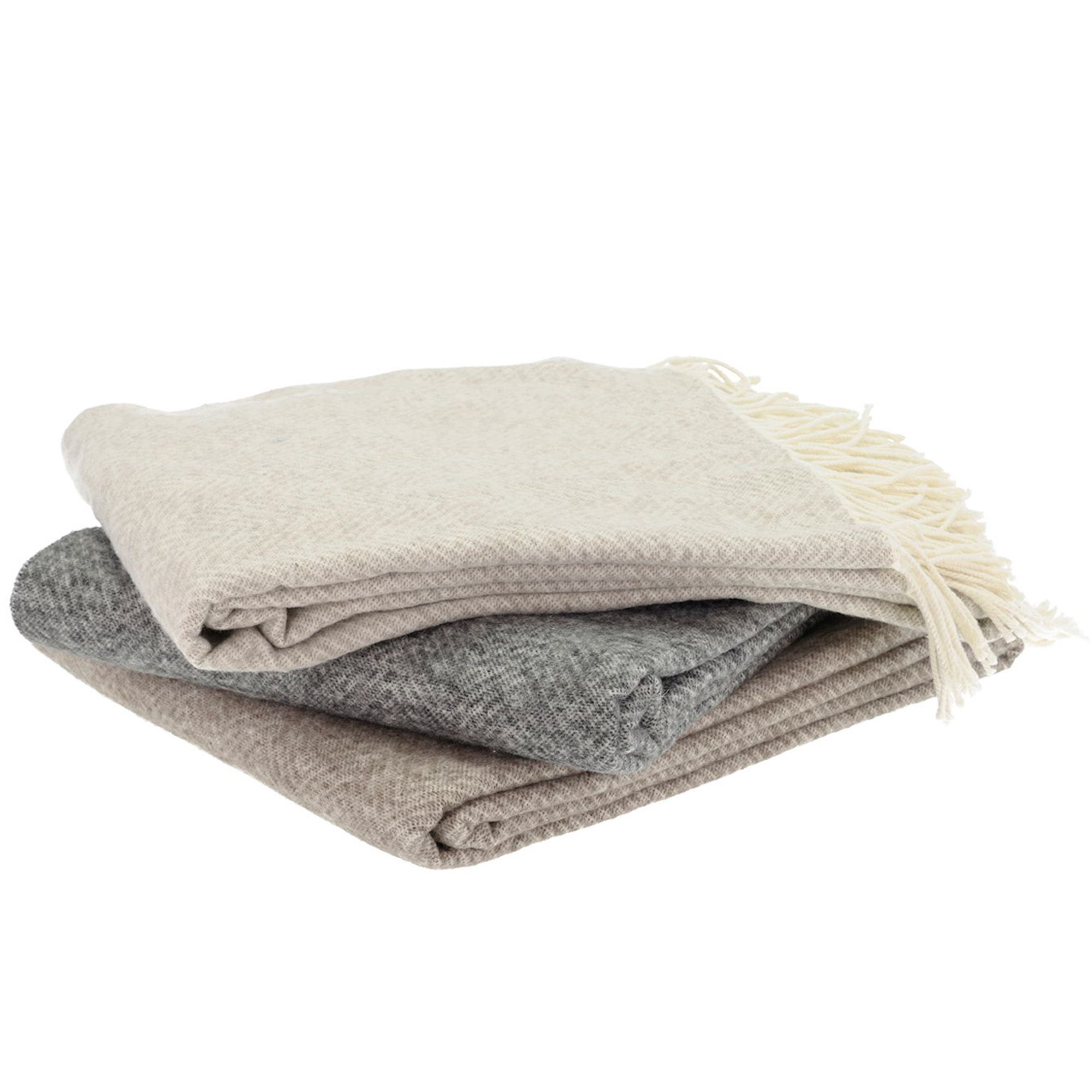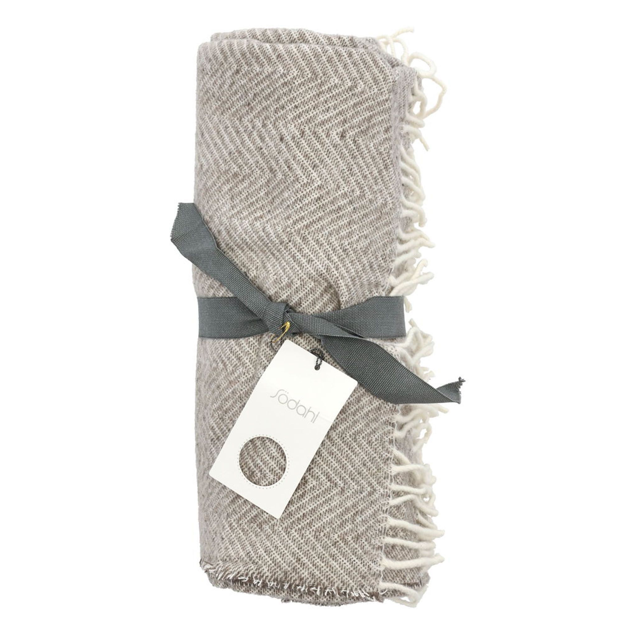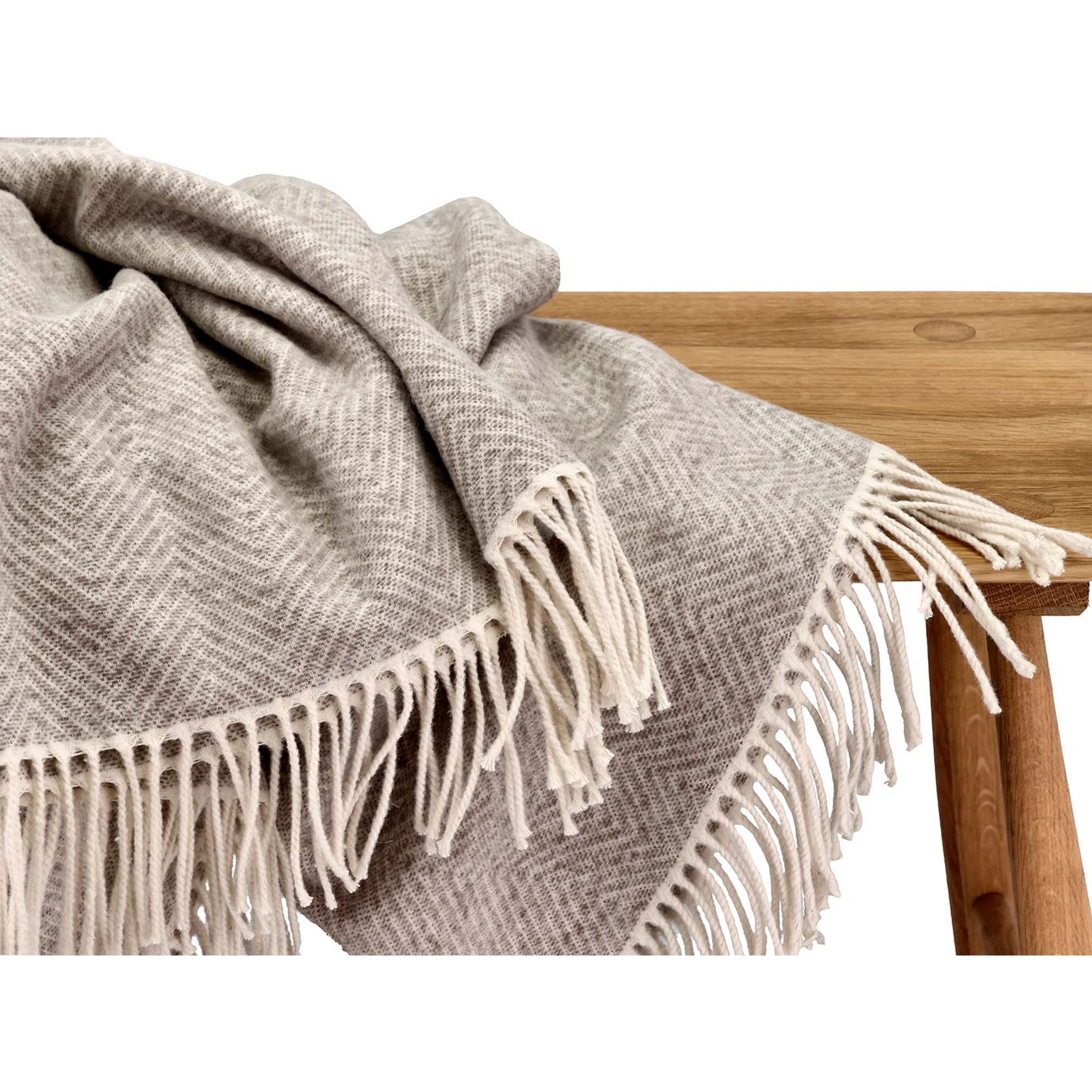 Den rolige beige farve og det elegante sildebensmønster skaber en hyggelig atmosfære og gør plaiden nem at kombinere med øvrige tekstiler i hjemmet.