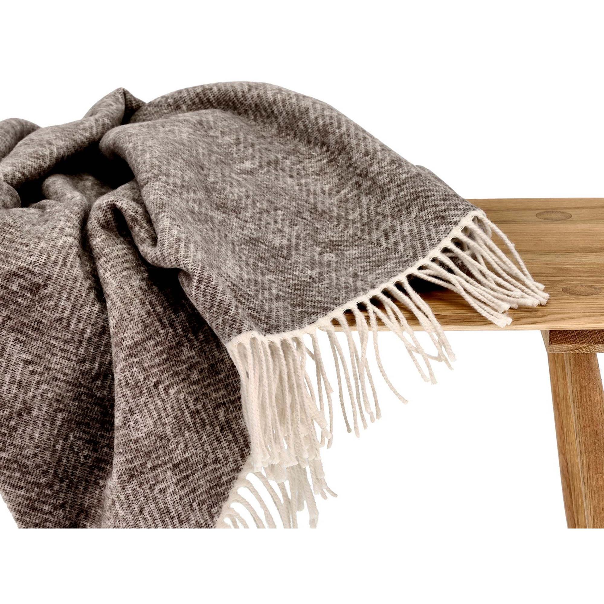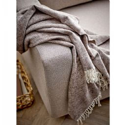 Den rolige beige farve og det elegante sildebensmønster skaber en hyggelig atmosfære og gør plaiden nem at kombinere med øvrige tekstiler i hjemmet.
