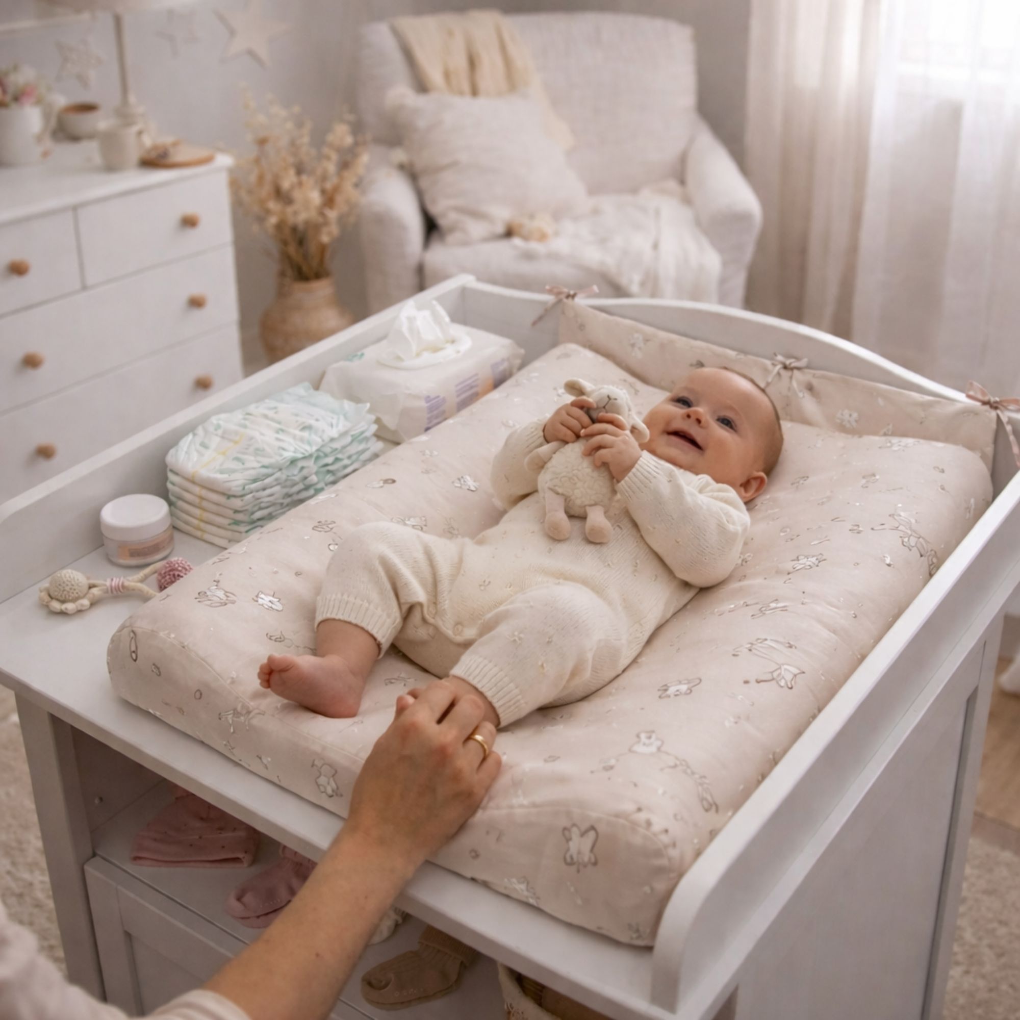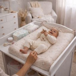 Den vandafvisende overflade gør det nemt at tørre små uheld af med en fugtig klud. Materialet er slidstærkt og holder formen, selv ved daglig brug. Kombinationen af komfort og funktionalitet gør puslepuden ideel til både hurtige bleskift og hyggelige stunder ved puslebordet.