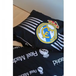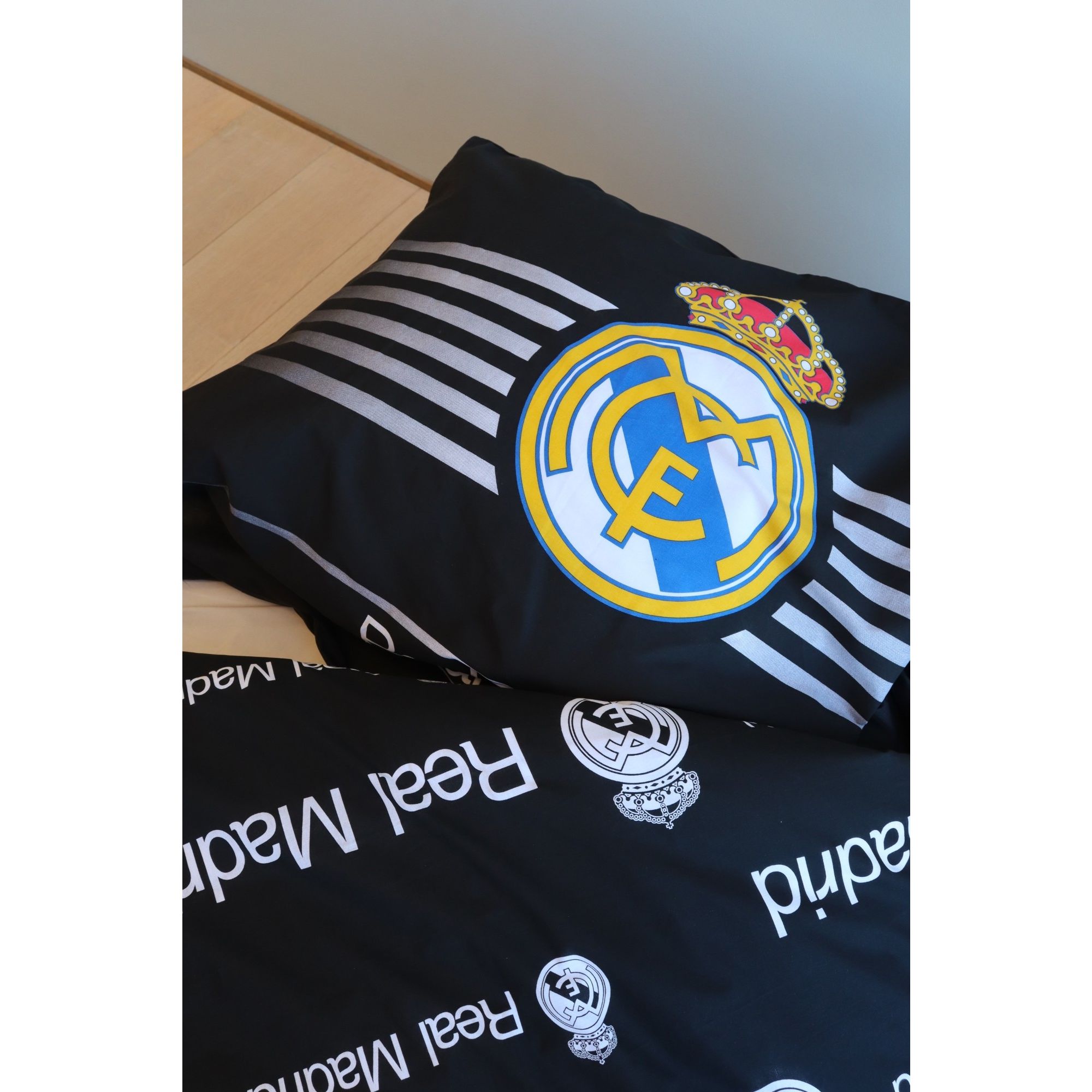 Real Madrid sengetøj - 100% bomuld - Børnesengetøj 140x200 cm - Sort fodbold sengetøj
