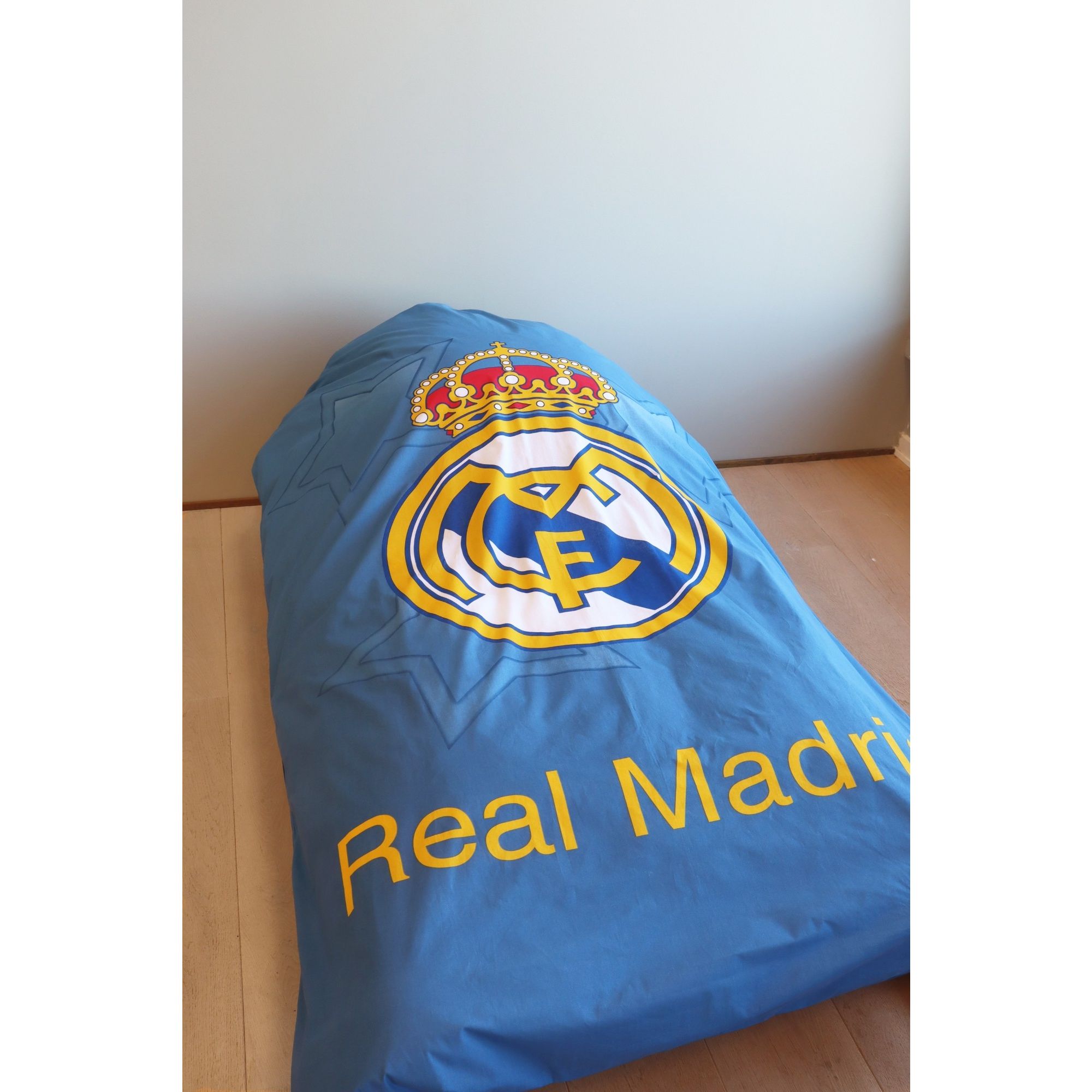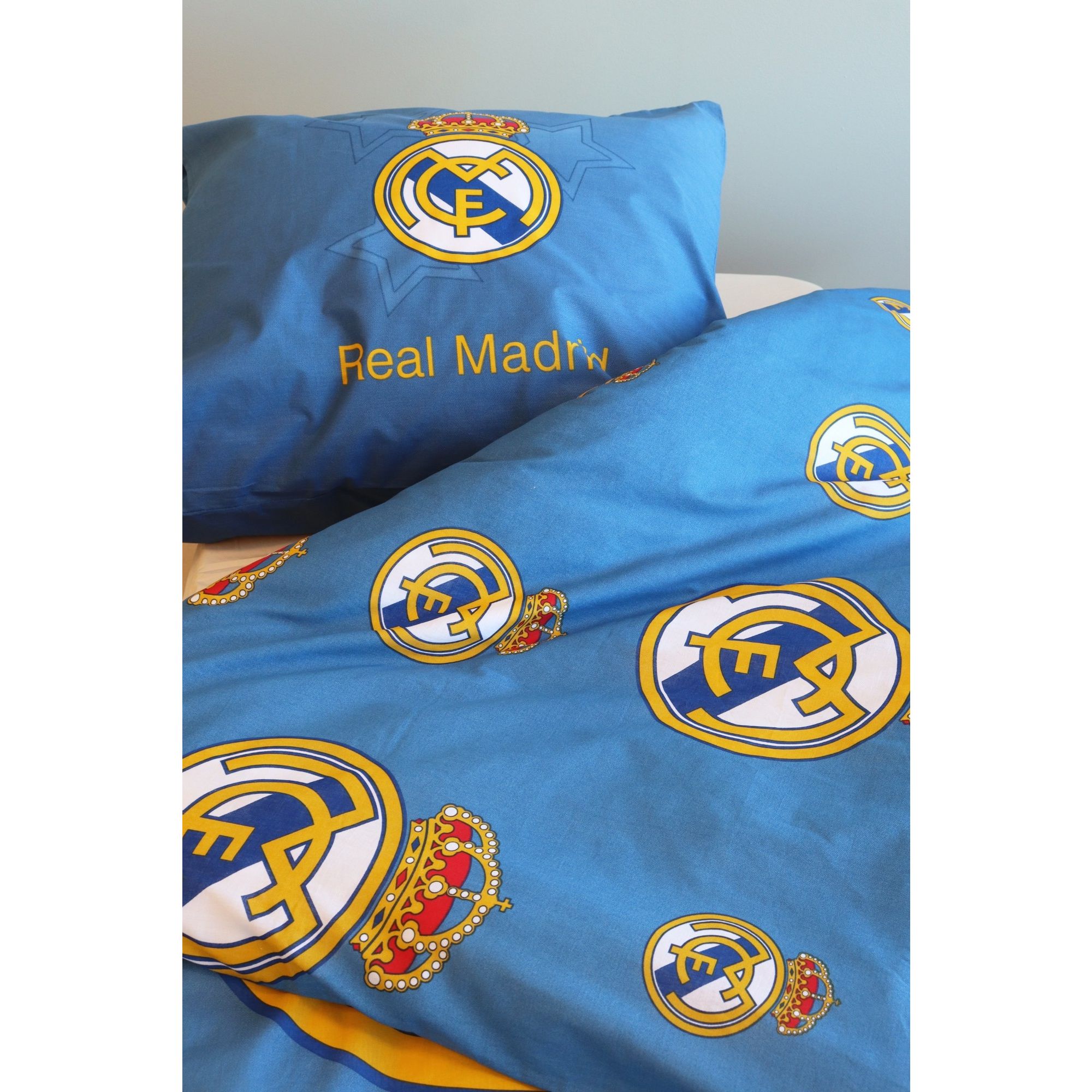 Skab et ægte fodboldunivers på børneværelset med dette Real Madrid sengetøj 140x200 cm i flot blå farve med stjerner. Dette sengesæt er perfekt til unge fodboldfans, der elsker Real Madrid CF og vil have deres yndlingshold med i sengen.