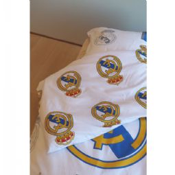 Real Madrid sengetøj - 100% bomuld - Børnesengetøj 140x200 cm - Fodbold sengetøj med logoer