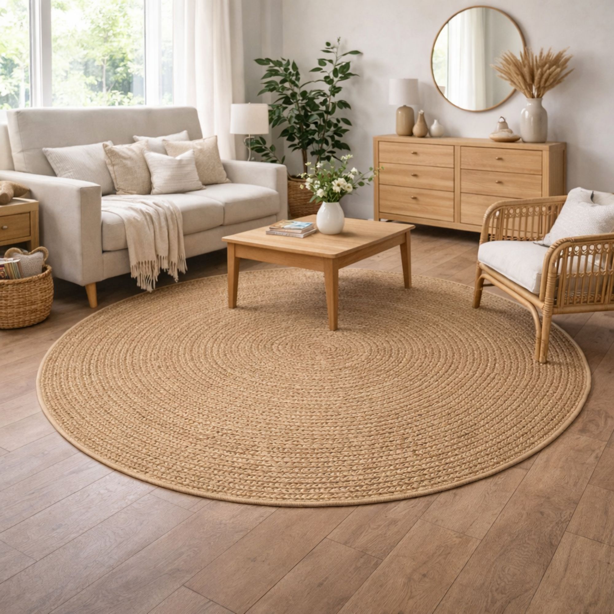Rundt gulvtæppe - Ø 160 - Vævet - Natur - Kenzy - Nordstrand Home