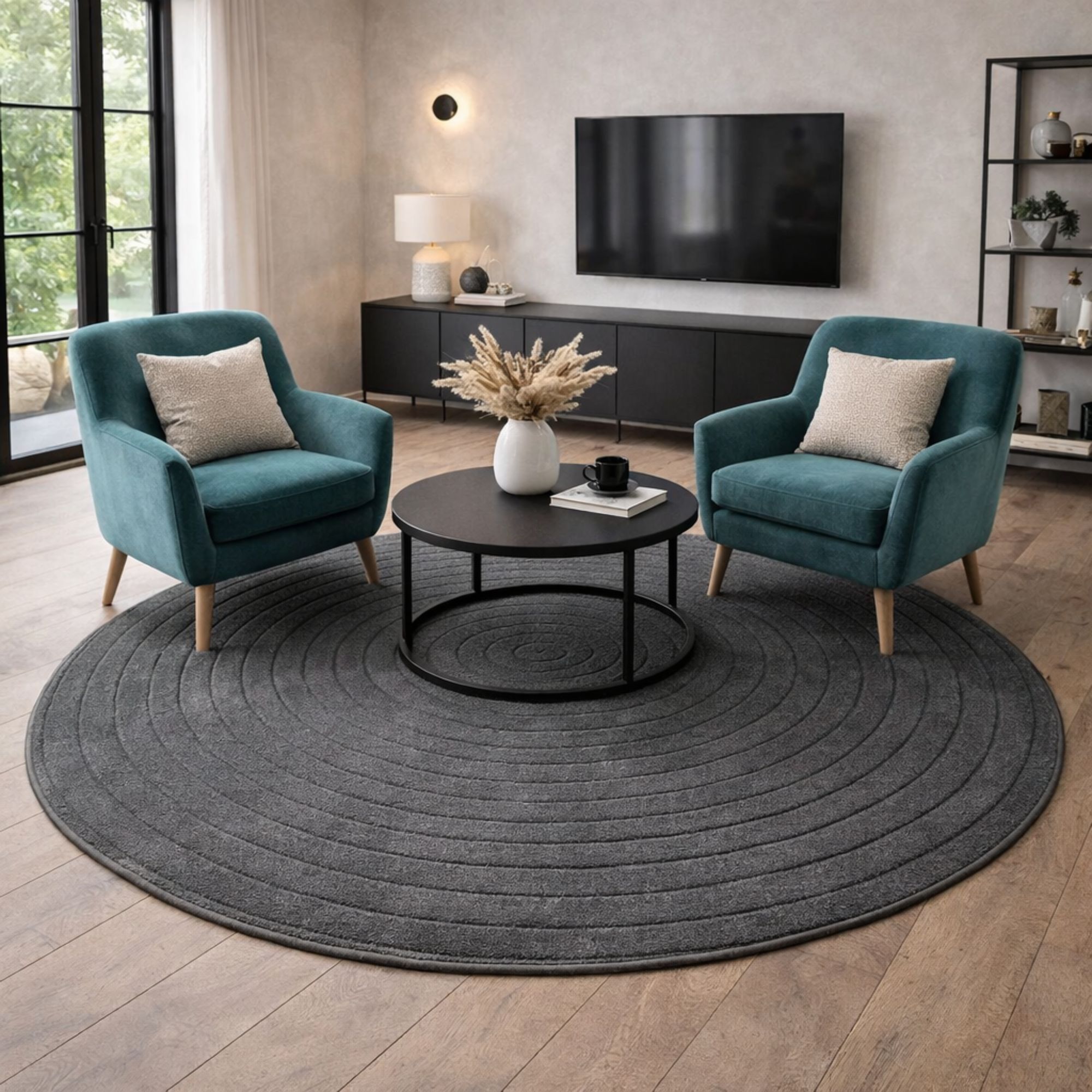 Rundt gulvtæppe - Ø 160 cm - Vævet - Gråt med mønster - Tenerife - Nordstrand Home