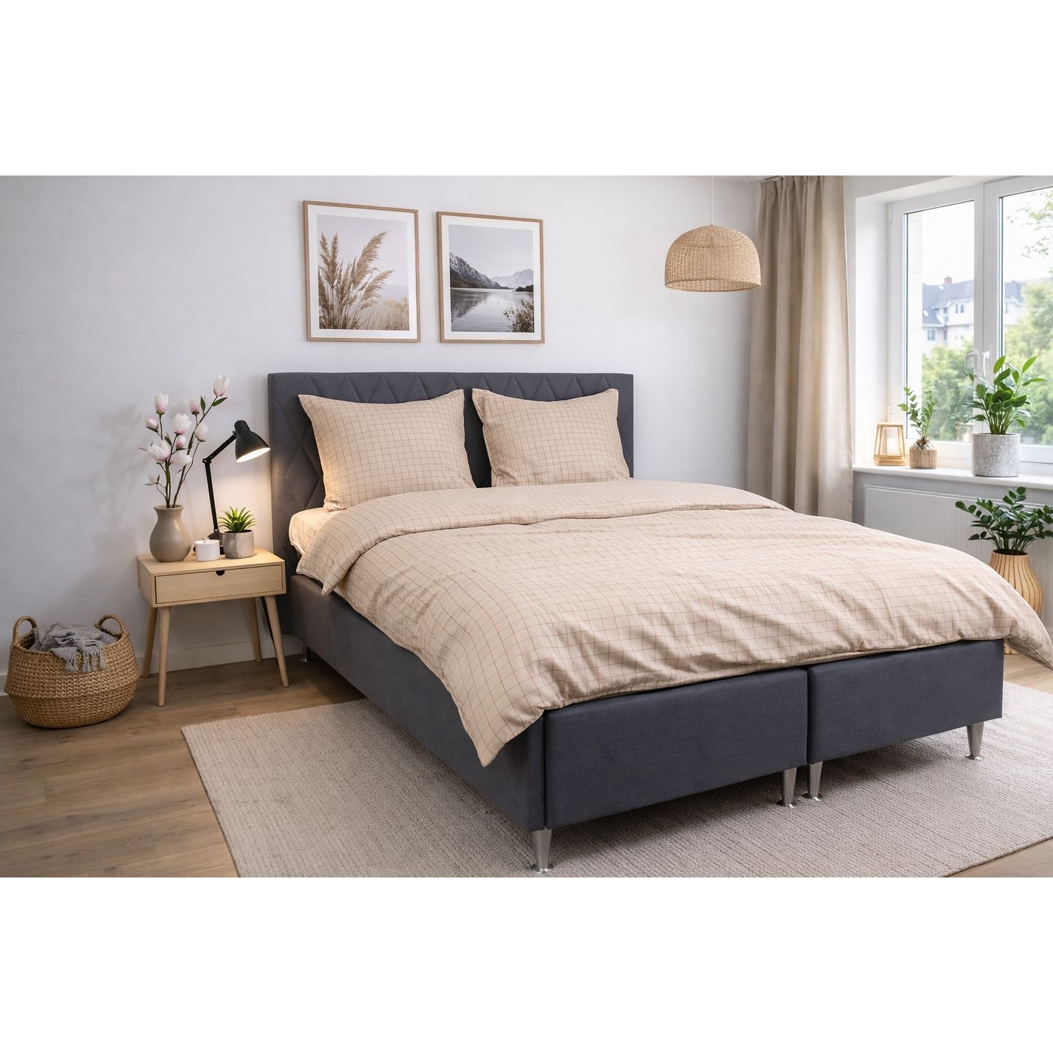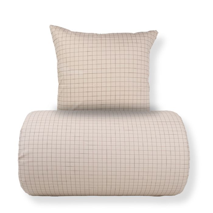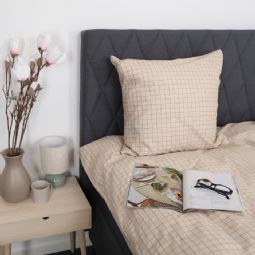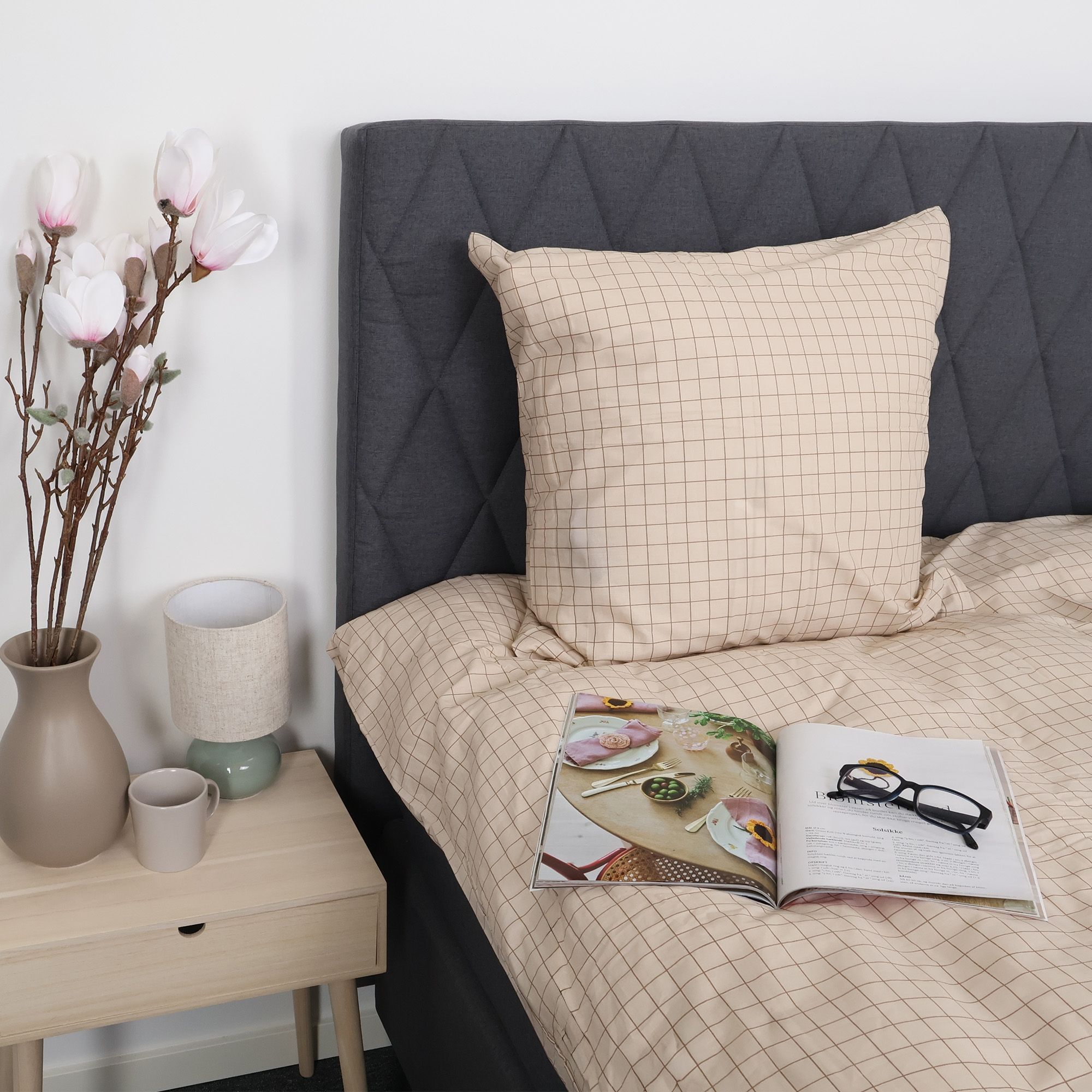 Sengetøj - 100% bomuld - Sandfarvet med brune tern