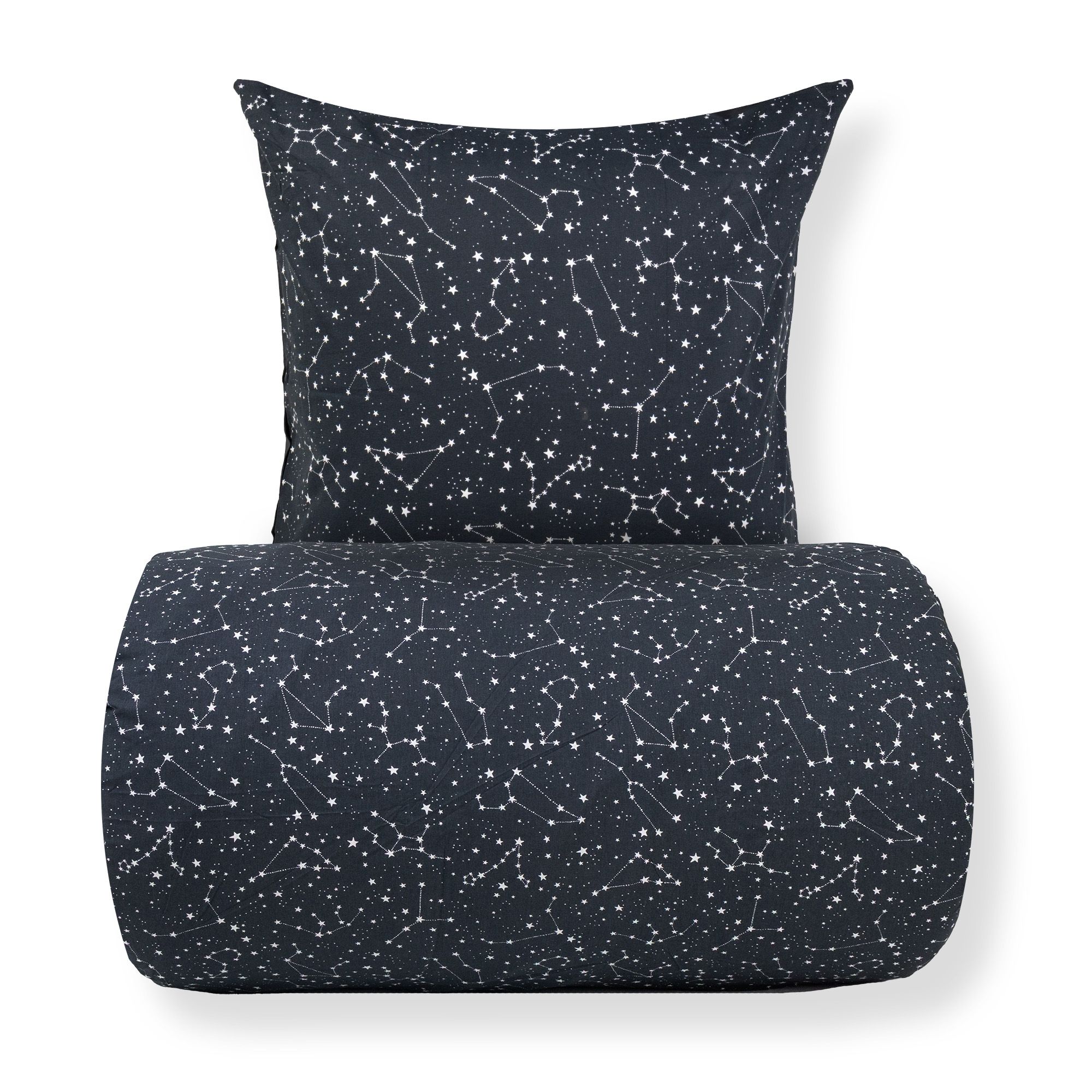Sengetøj - 100% Bomuld - Zodiac black - Vendbart med stjerner