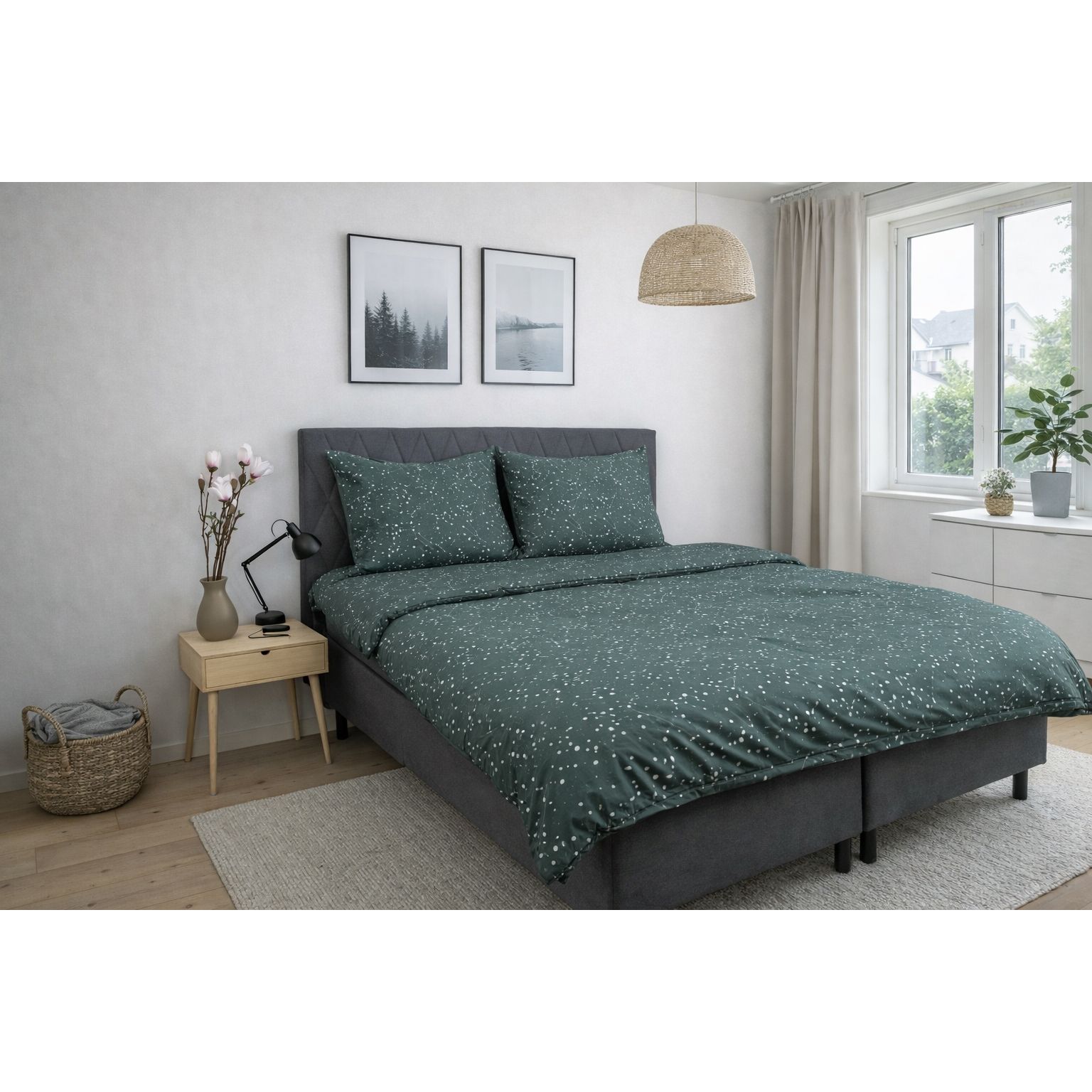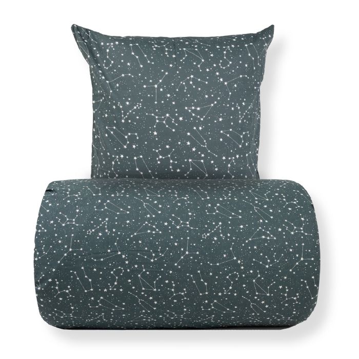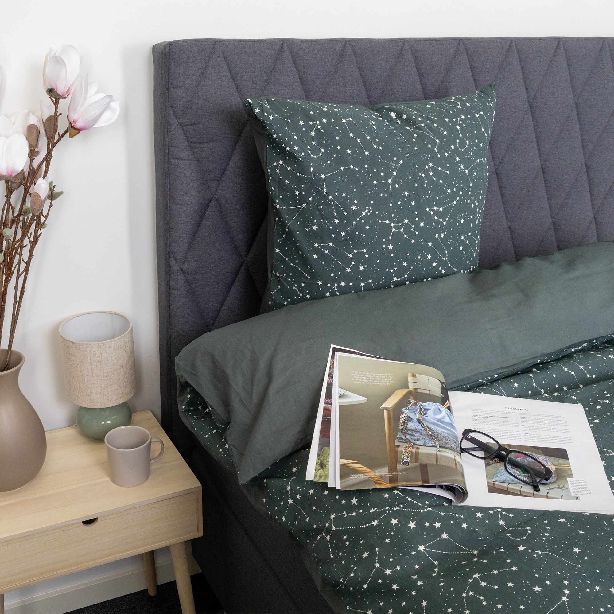 Sengetøj - 100% Bomuld - Zodiac green - Vendbart med stjerner