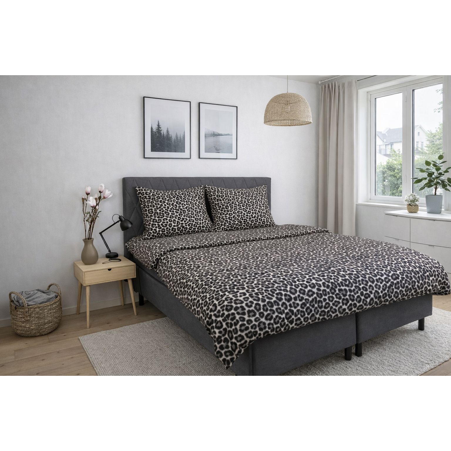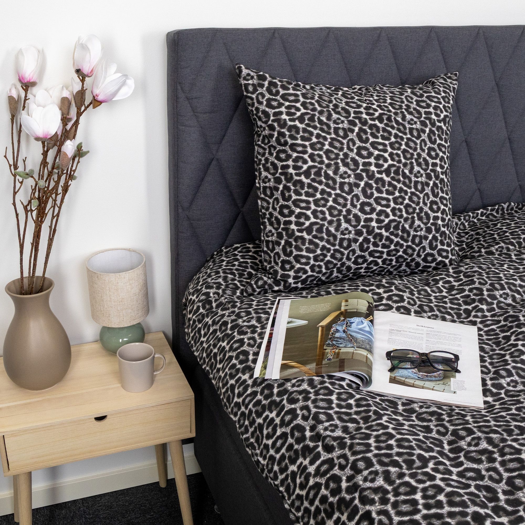 Giv soveværelset et dekorativt og stilfuldt udtryk med dette sengesæt i 100% bomuld med leopardprint. Det grafiske mønster i sorte, brune og hvide nuancer tilfører personlighed og kant, samtidig med at sengetøjet bevarer et tidløst og elegant look.