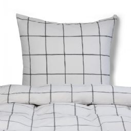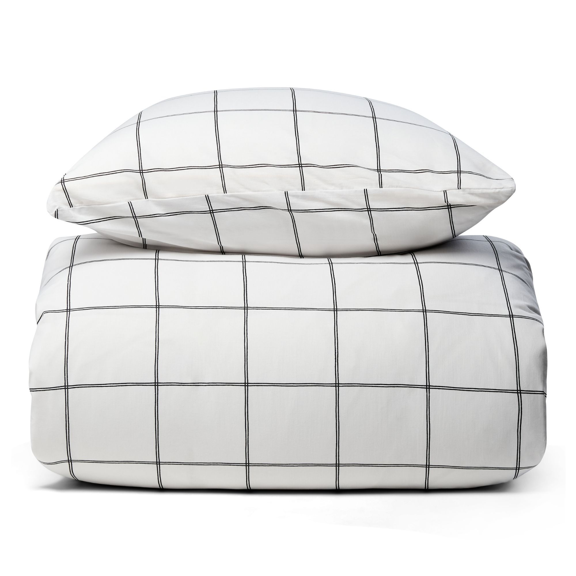 Sengetøj 100% bomuld - 140x220 cm - Hvidt sengesæt med sorte tern - Nordstrand Home dynebetræk