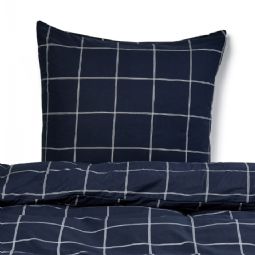 Sengetøj 100% bomuld - 140x220 cm - Mørkeblåt sengesæt med hvide tern - Nordstrand Home dynebetræk