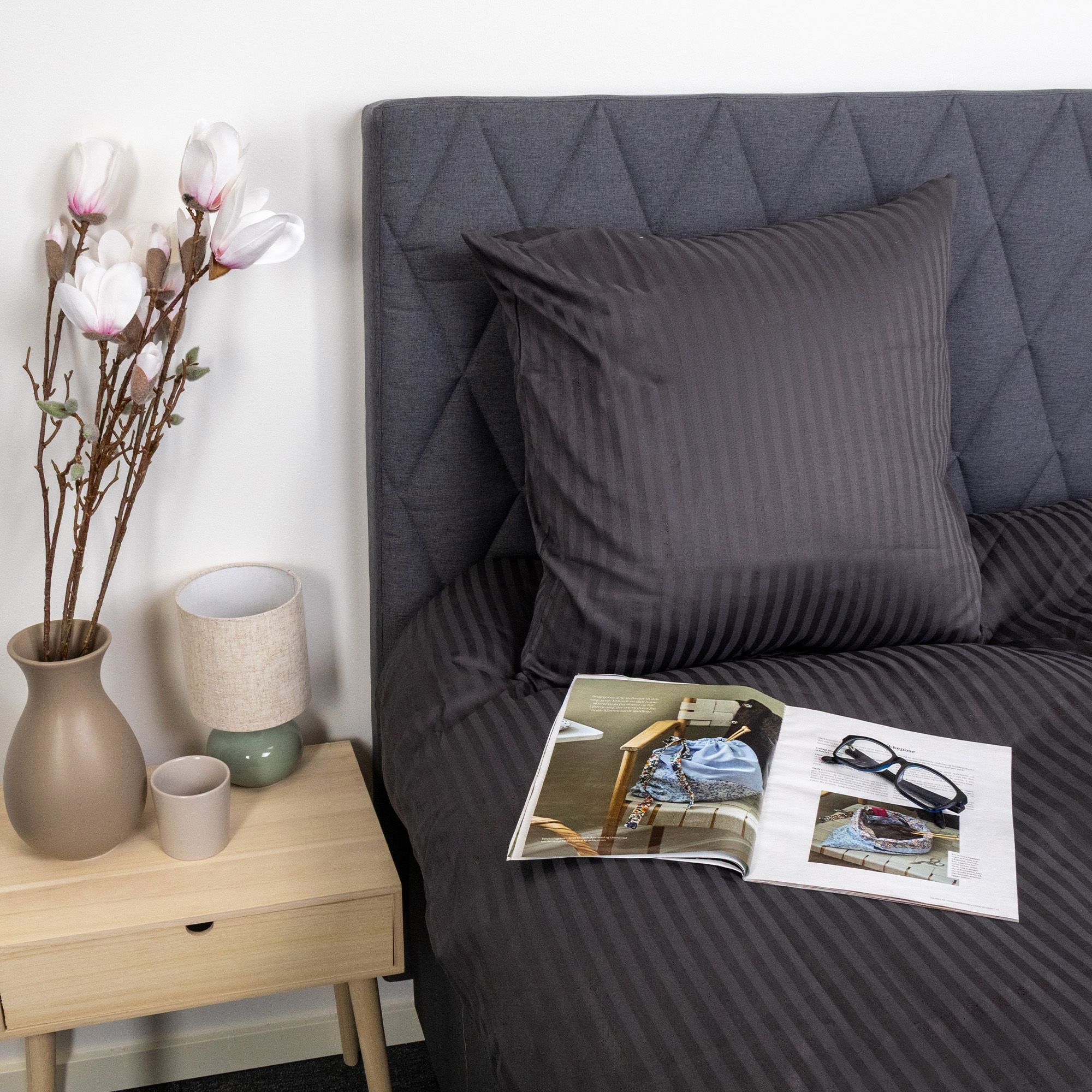 Sengetøj - 100% bomuldssatin - Klassisk mørkegrå striber