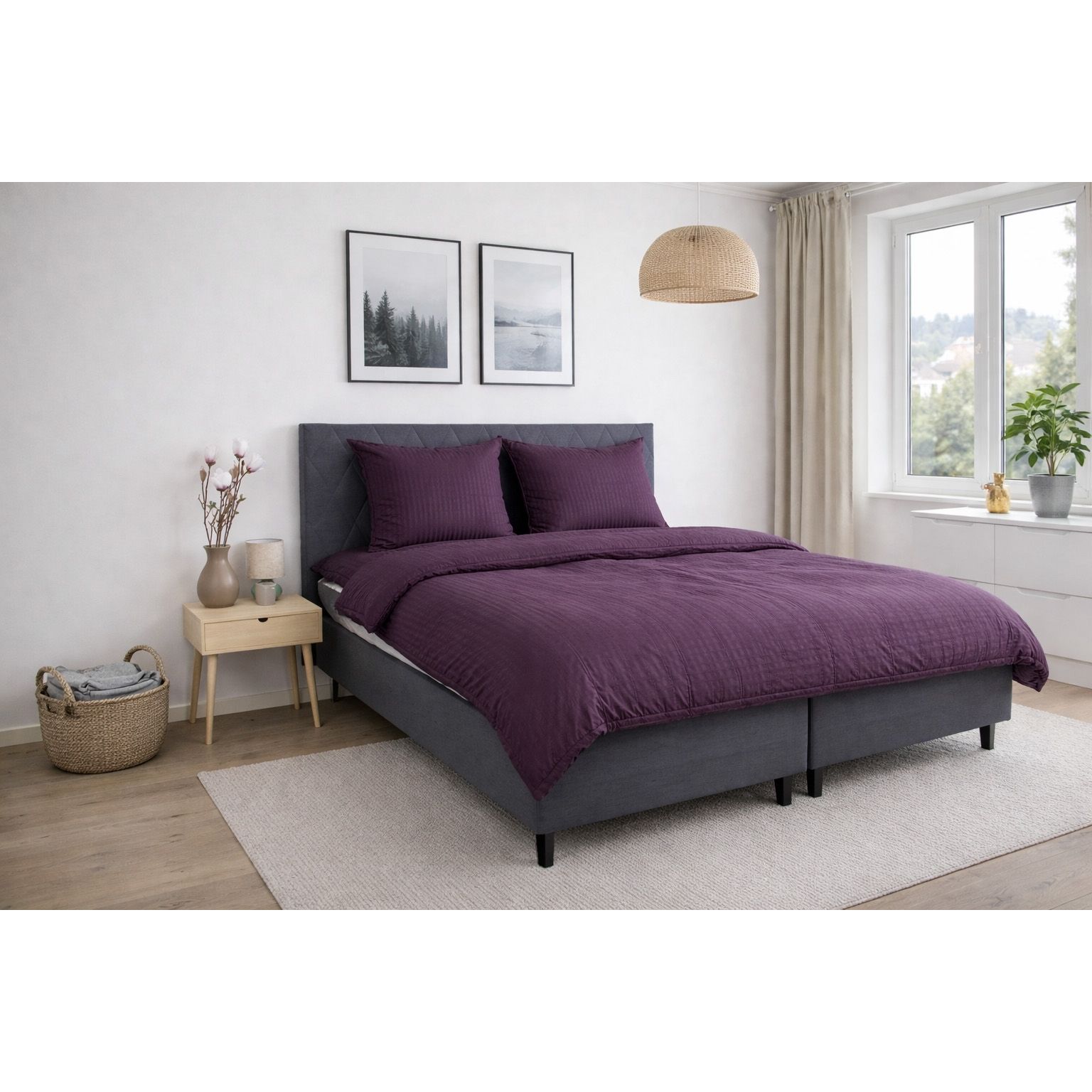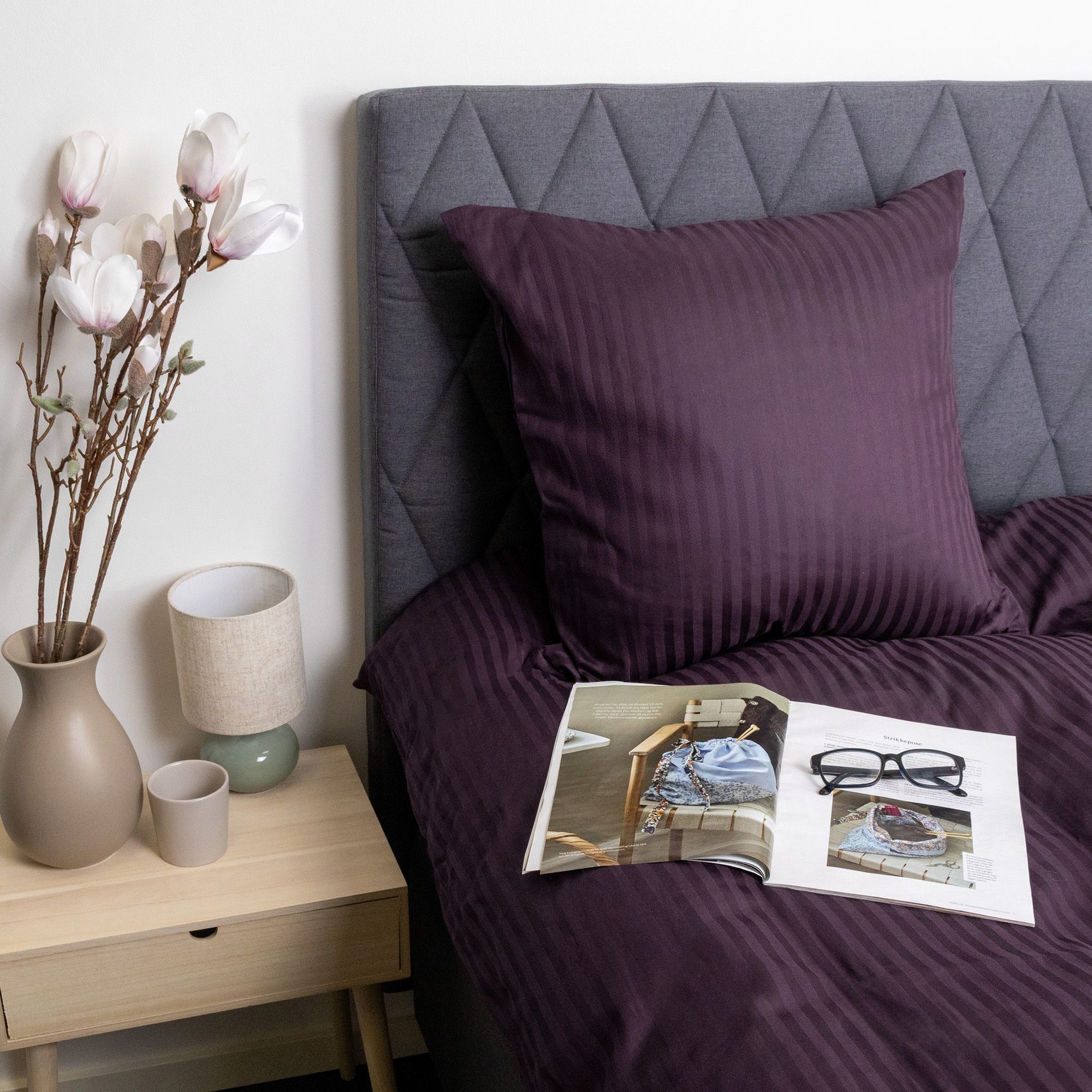 De jacquardvævede striber er vævet direkte ind i stoffet og skaber et diskret spil mellem matte og blanke flader. Denne væveteknik giver sengetøjet struktur og dybde uden brug af print og sikrer, at mønsteret forbliver flot og ensartet, selv efter gentagen vask. Det ensfarvede design gør det nemt at få sengesættet til at passe ind i alle former for indretning.