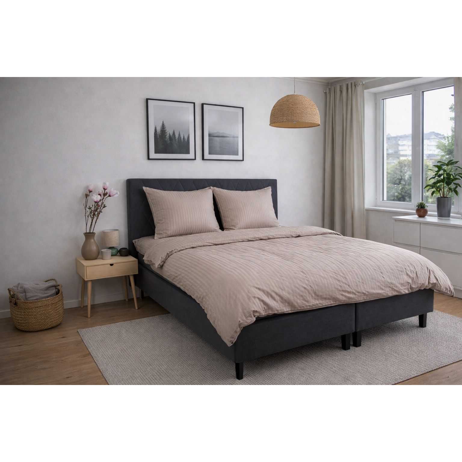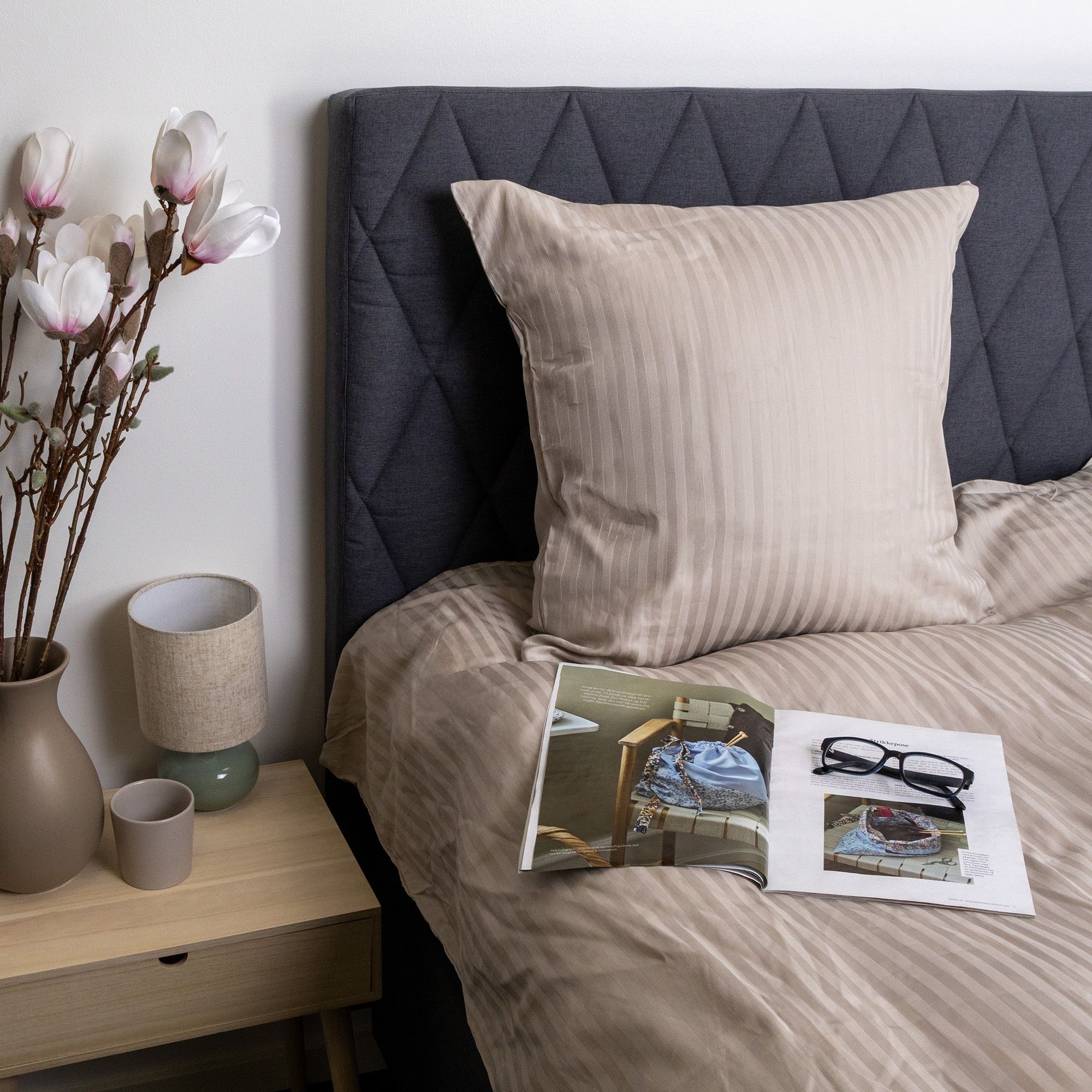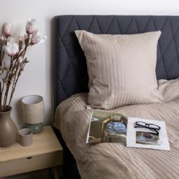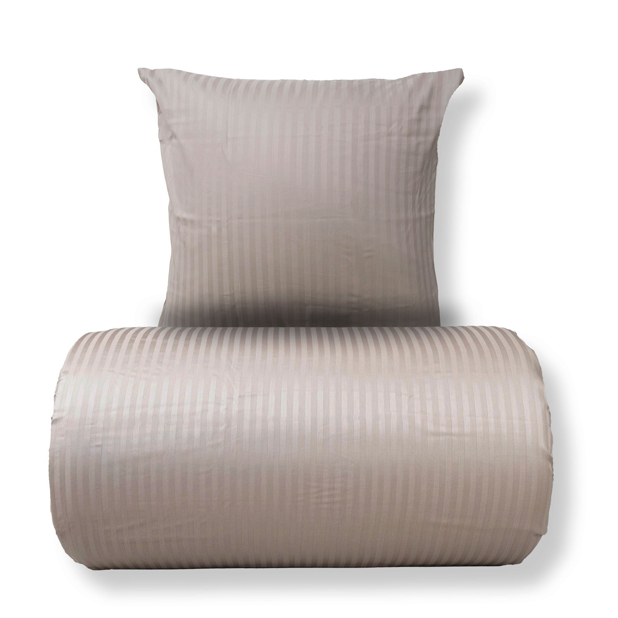Sengetøj - 100% bomuldssatin - Klassisk sandfarvet striber