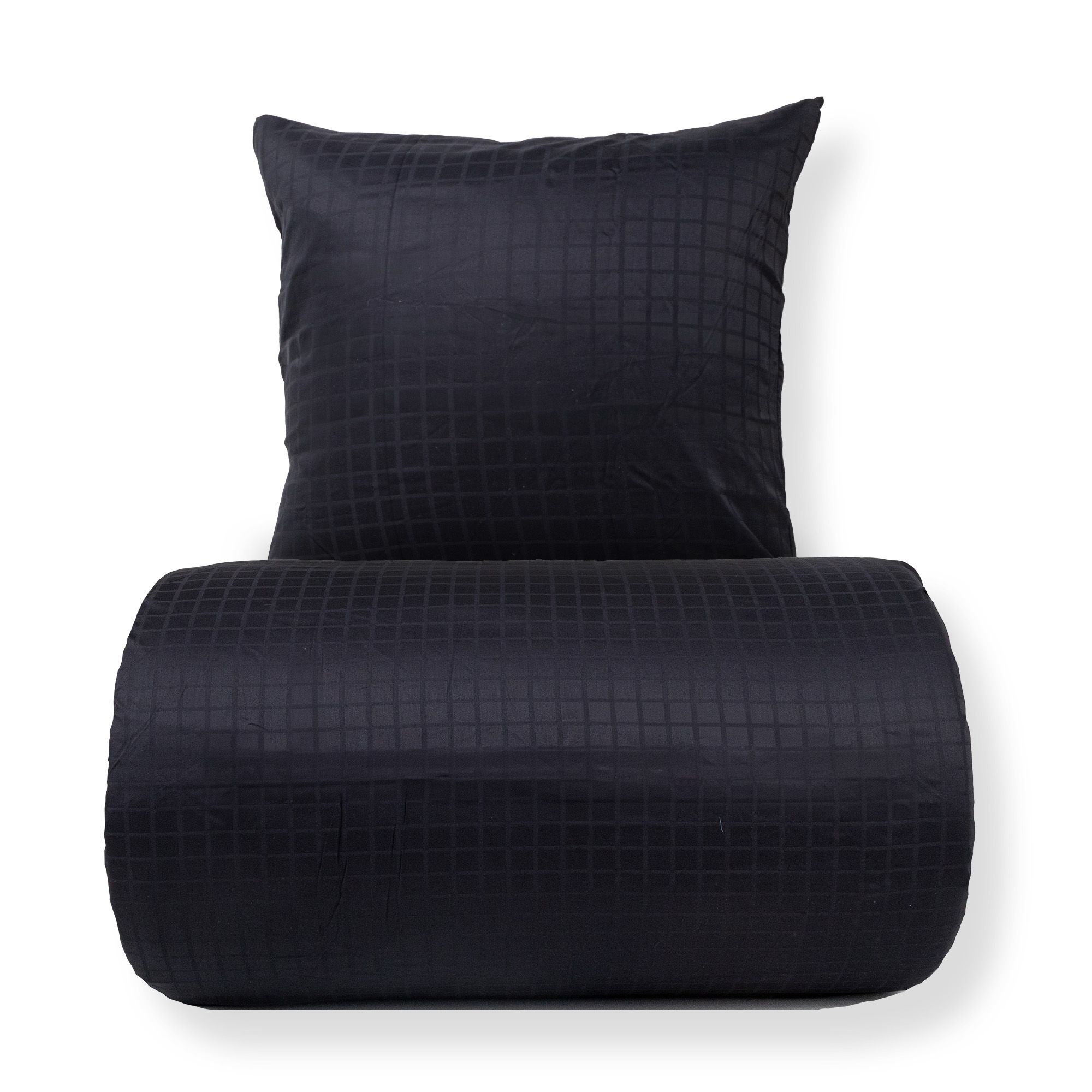 Sengetøj - 100% bomuldssatin - Sort jacquardvævet - Ensfarvet