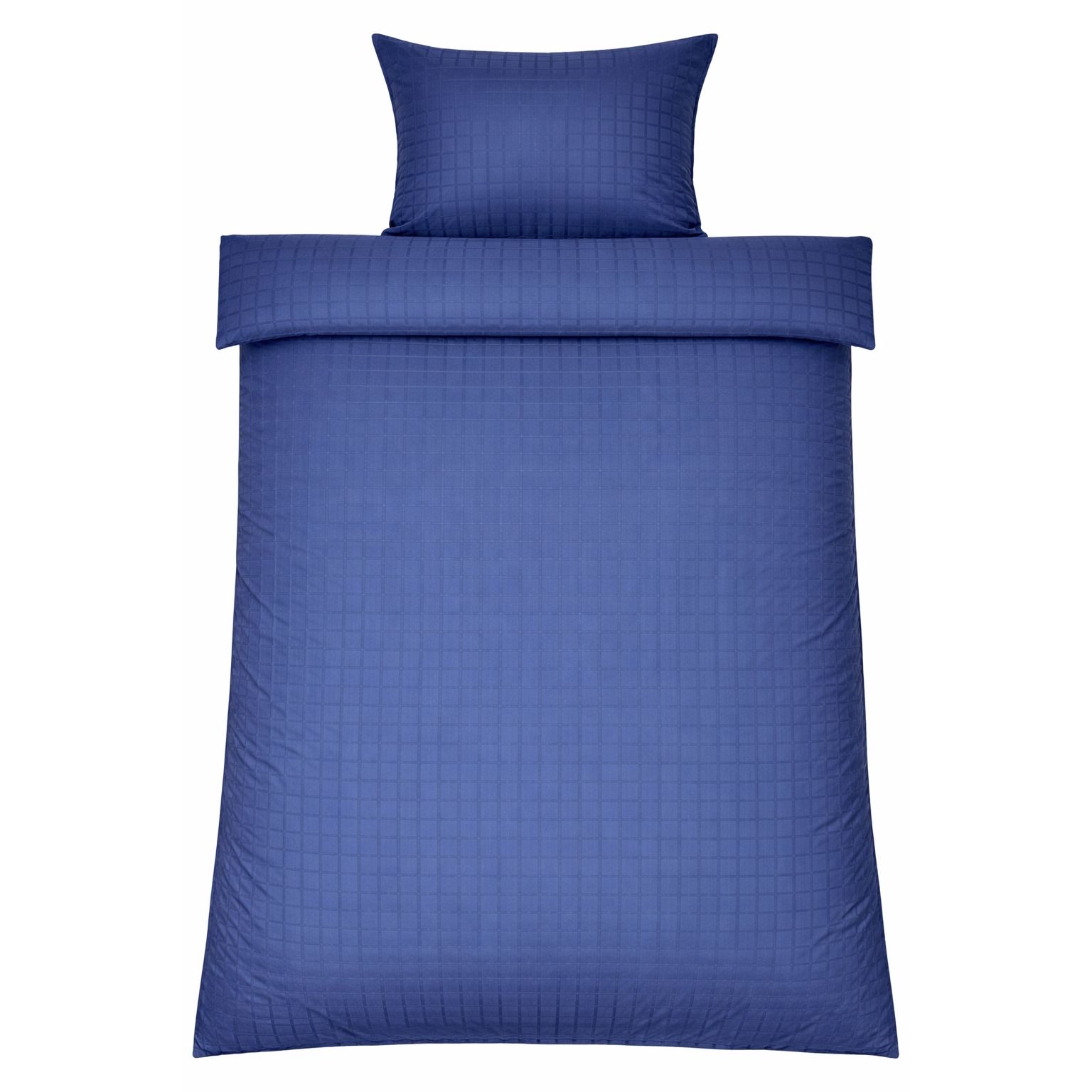 De blå firkanter giver et moderne og sofistikeret look, der passer perfekt ind i både minimalistiske og klassiske soveværelser. Dyne- og pudebetræk lukkes med skjult lynlås, som giver et pænt finish og holder dynen sikkert på plads.
