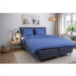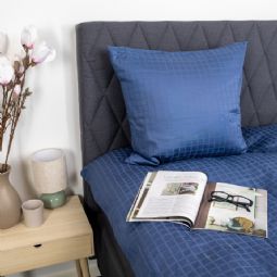 Sengetøj - 100% bomuldssatin - Blå jacquardvævet - Ensfarvet