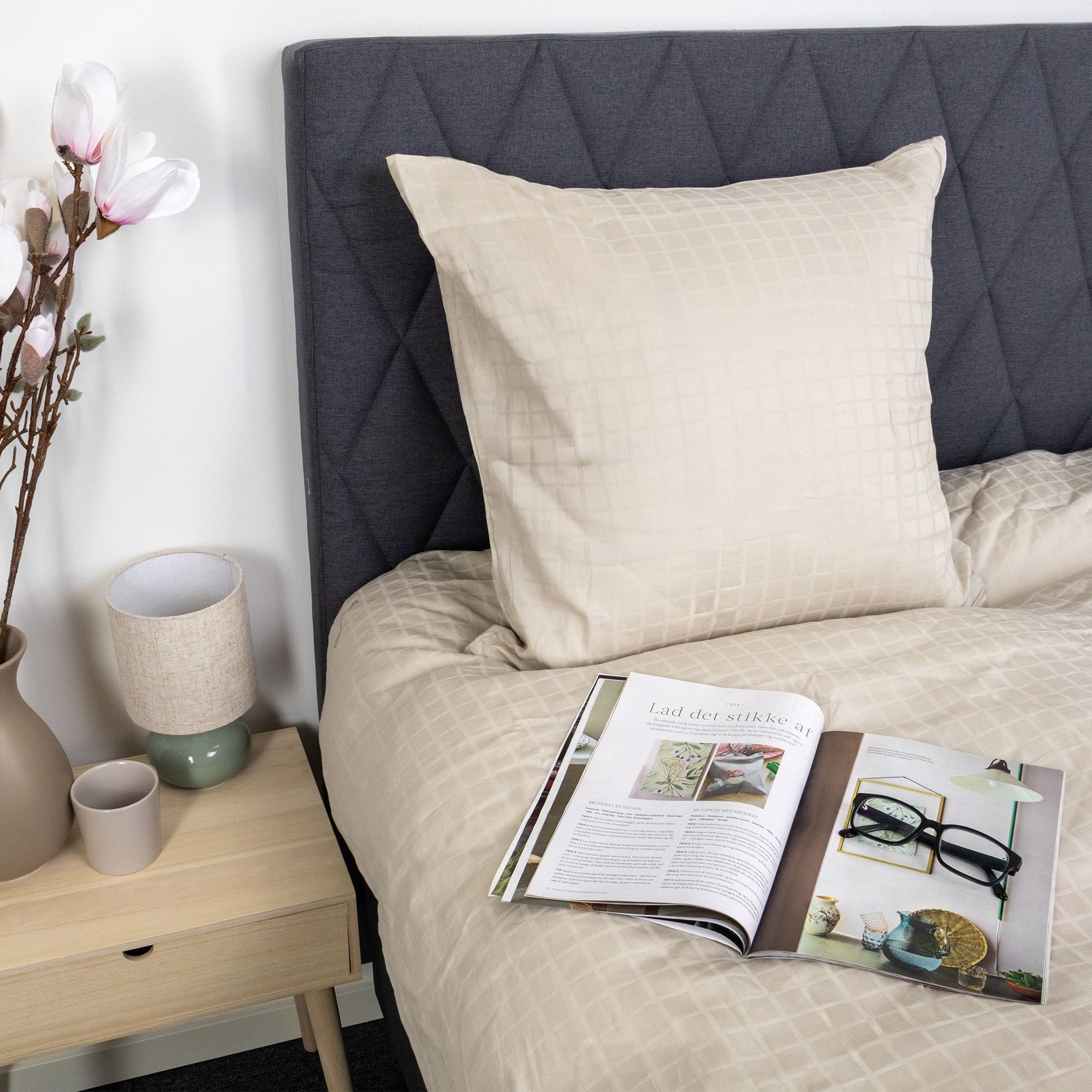 Sengetøj - 100% bomuldssatin - Sandfarvet jacquardvævet - Ensfarvet
