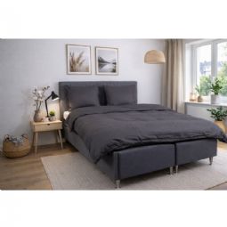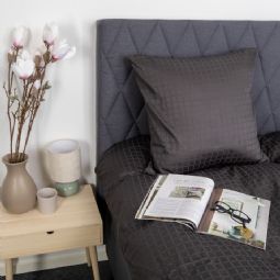 Sengetøj - 100% bomuldssatin - Mørkegrå jacquardvævet - Ensfarvet