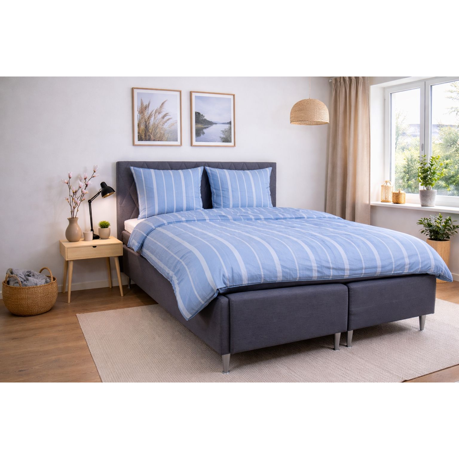 Sengetøj - 100% bomuldssatin - Lana - Blå og lyseblå striber