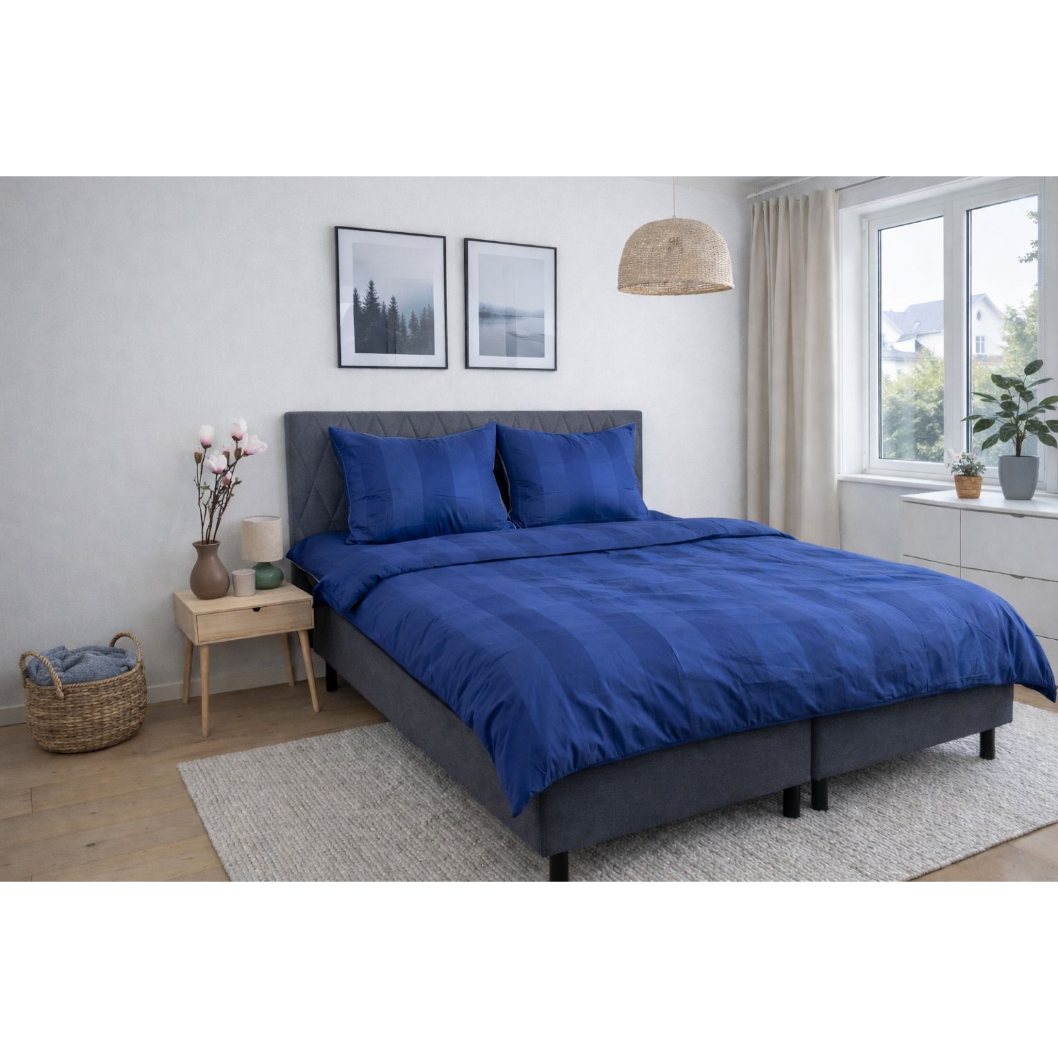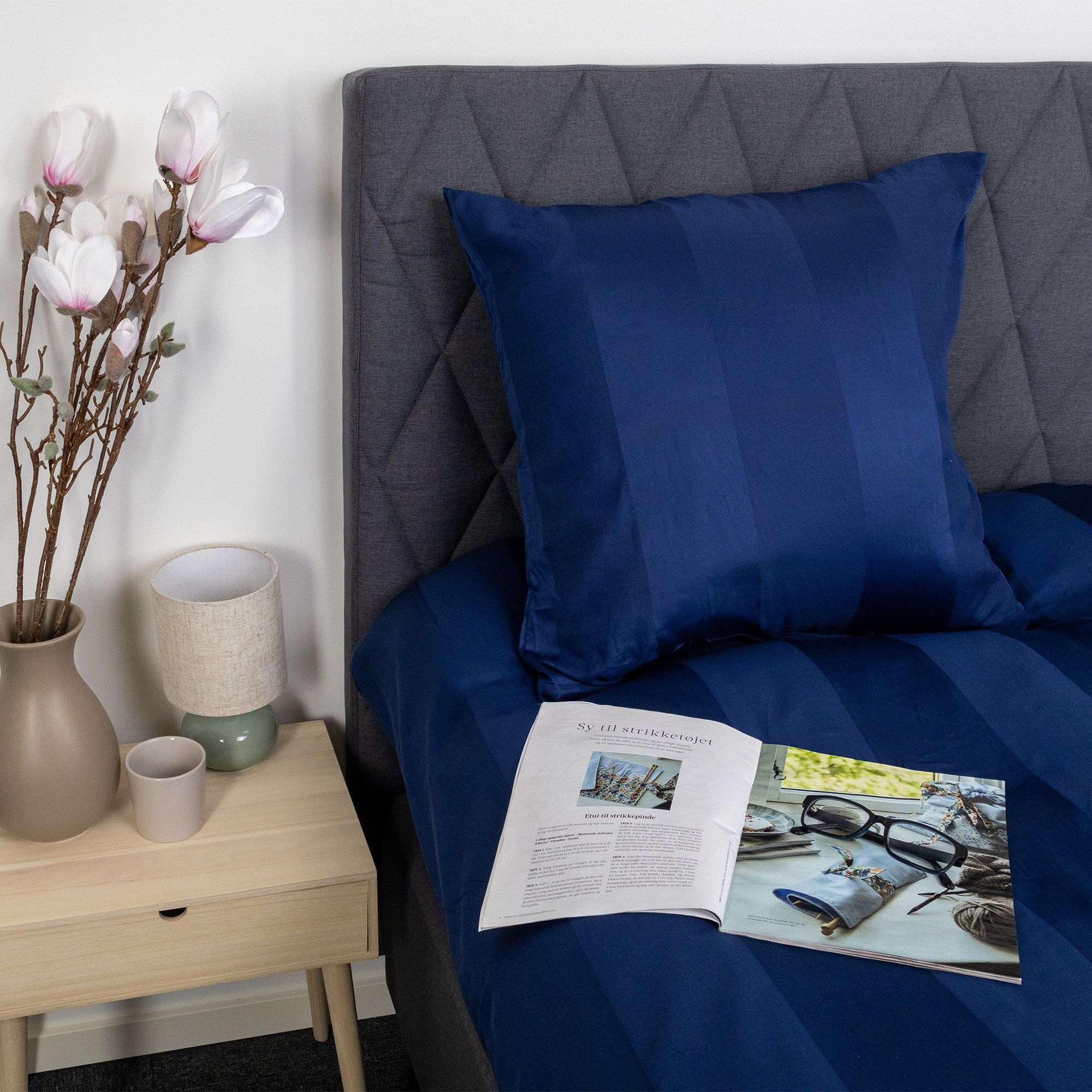 Sengetøj - 100% bomuldssatin - Diana - Blå jacquardvævet striber