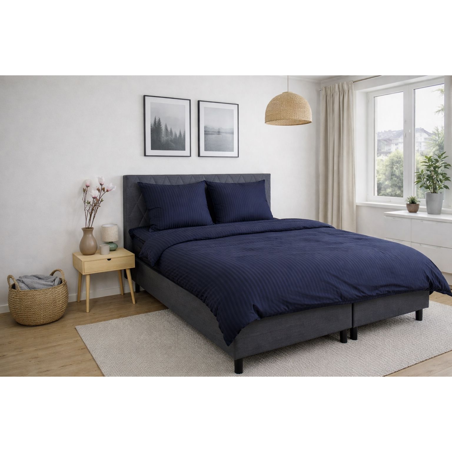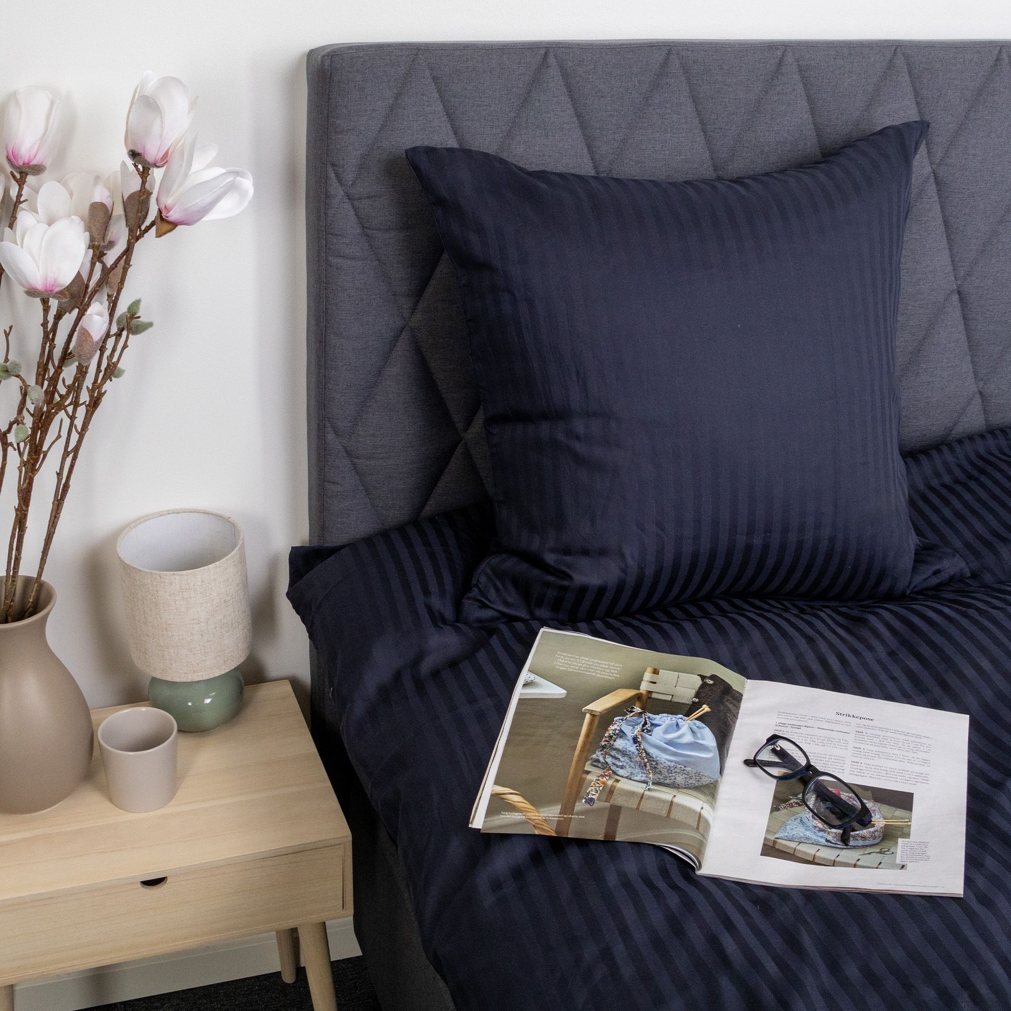 Sengetøj - 100% bomuldssatin - Klassisk mørkeblå striber