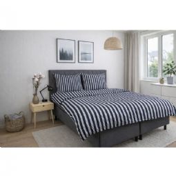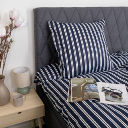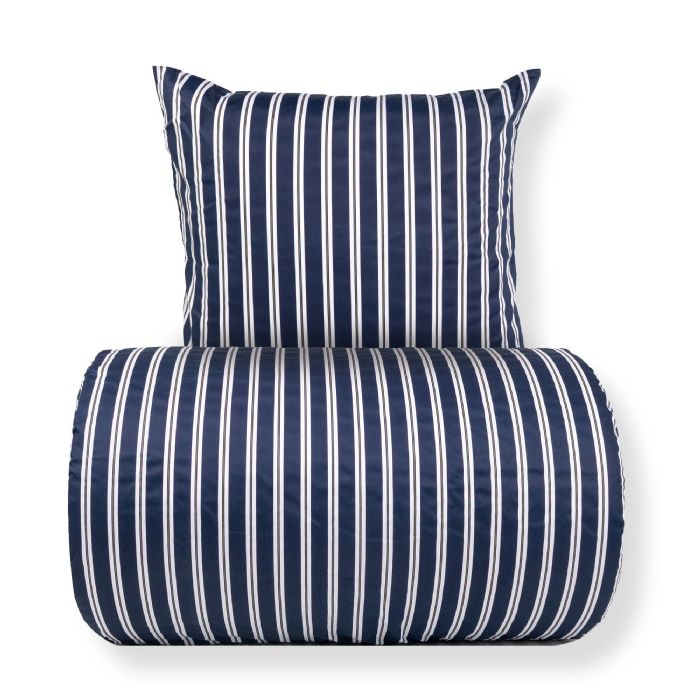 Sengetøj 140x200 cm - Bomuldssatin - Blåt stribet print