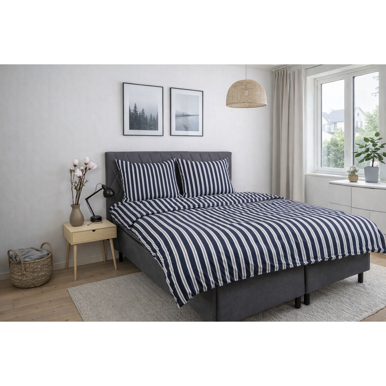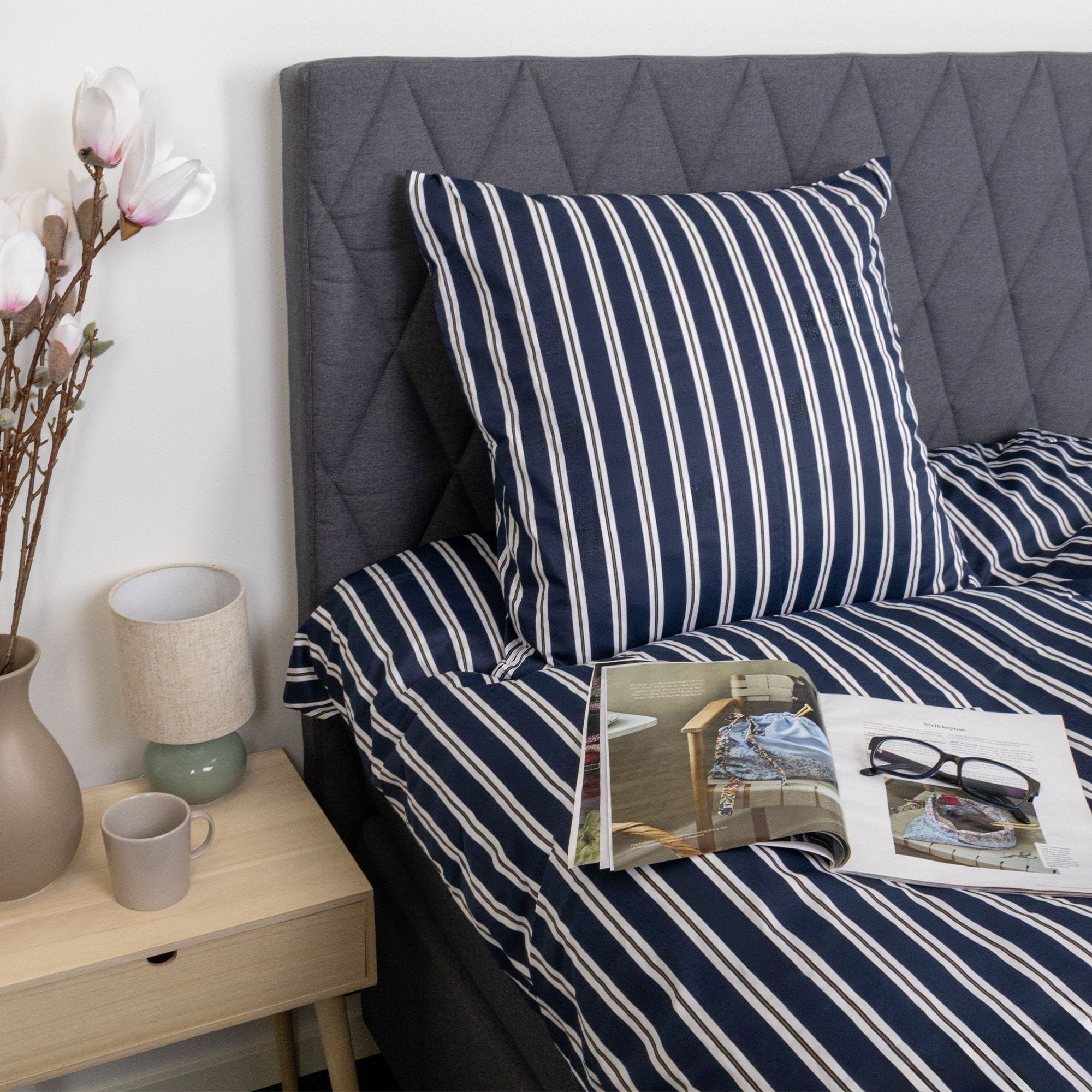 Sengetøj i 100% bomuldssatin - stribet print