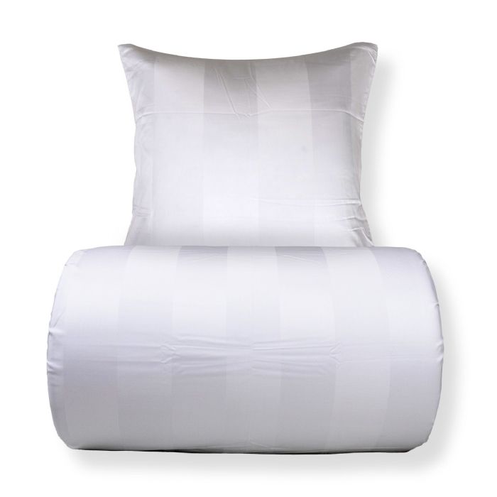 Sengetøj 140x200 cm - 100% bomuldssatin - Hvide brede striber