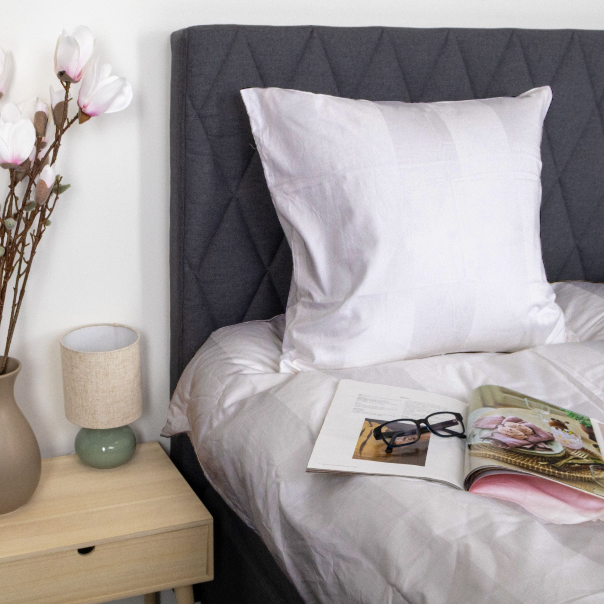 Bomuldssatin er vævet i en fin satinvævning, som giver en ekstra glat, blød og let glansfuld overflade mod huden. Den ekstra tætte 400TC vævning - svarende til 400 tråde pr. kvadrattomme - sikrer en særdeles fin og slidstærk kvalitet. Jo højere thread count, desto mere holdbar bliver vævningen, og med 400TC får du et bomuldssatin sengetøj i absolut luksusklasse. Samtidig bevares bomuldens naturlige åndbarhed, så du får et behageligt og tempereret sovemiljø året rundt.