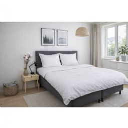 Skab en eksklusiv hotelstemning i soveværelset med dette hvide stribede sengetøj i 100% bomuldssatin. Det elegante design med brede jacquardvævede striber kombinerer tidløs minimalisme med luksuriøs komfort og er perfekt til dig, der ønsker et stilrent og indbydende sovemiljø.