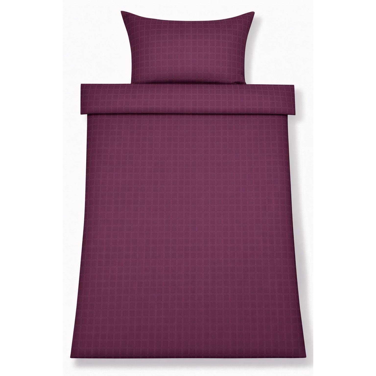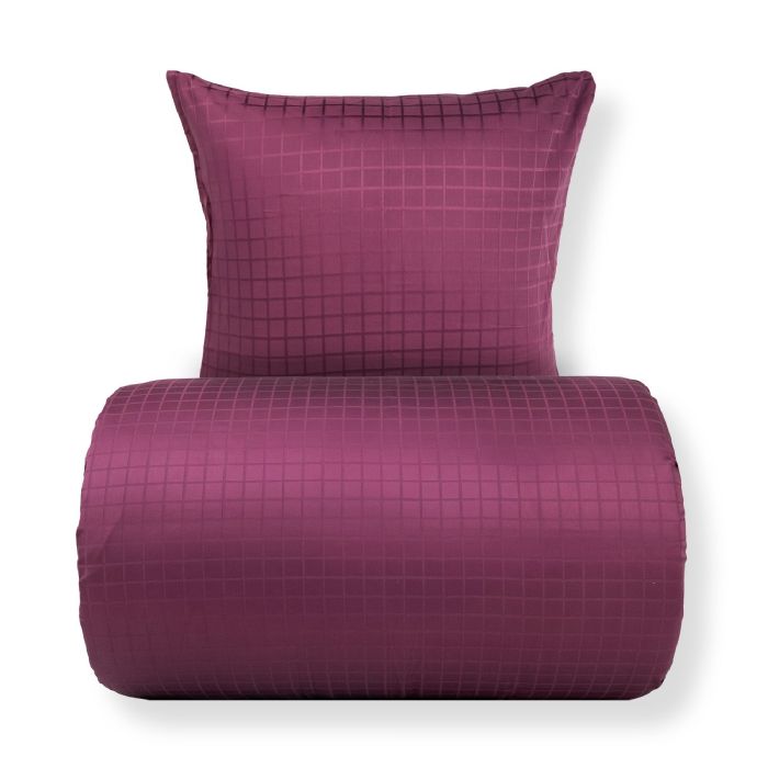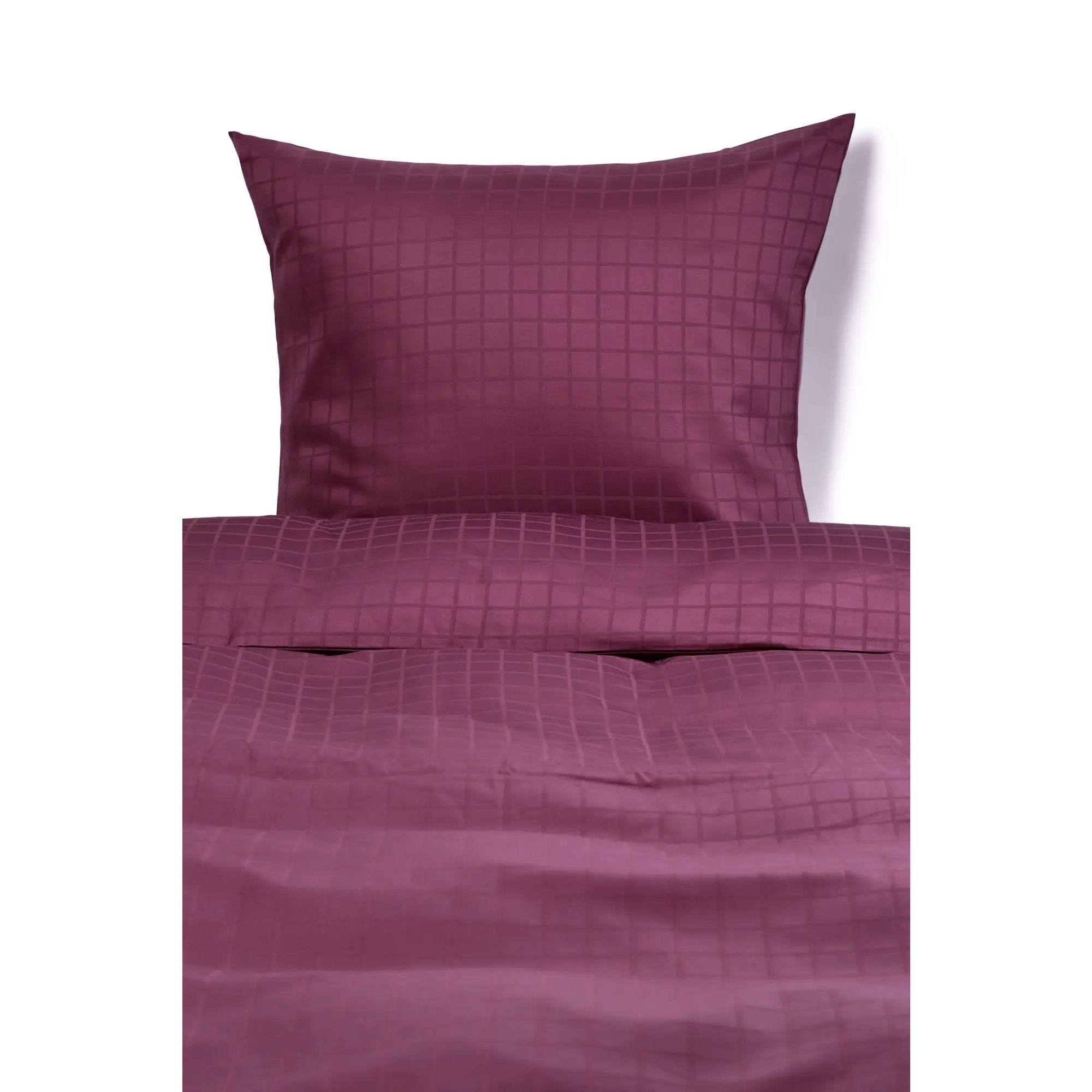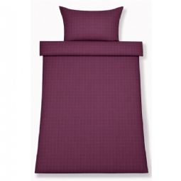 Sengetøj 140x200 cm - GOTS certificeret økologisk bomuldssatin - Blomme farvet jacquardvævede tern