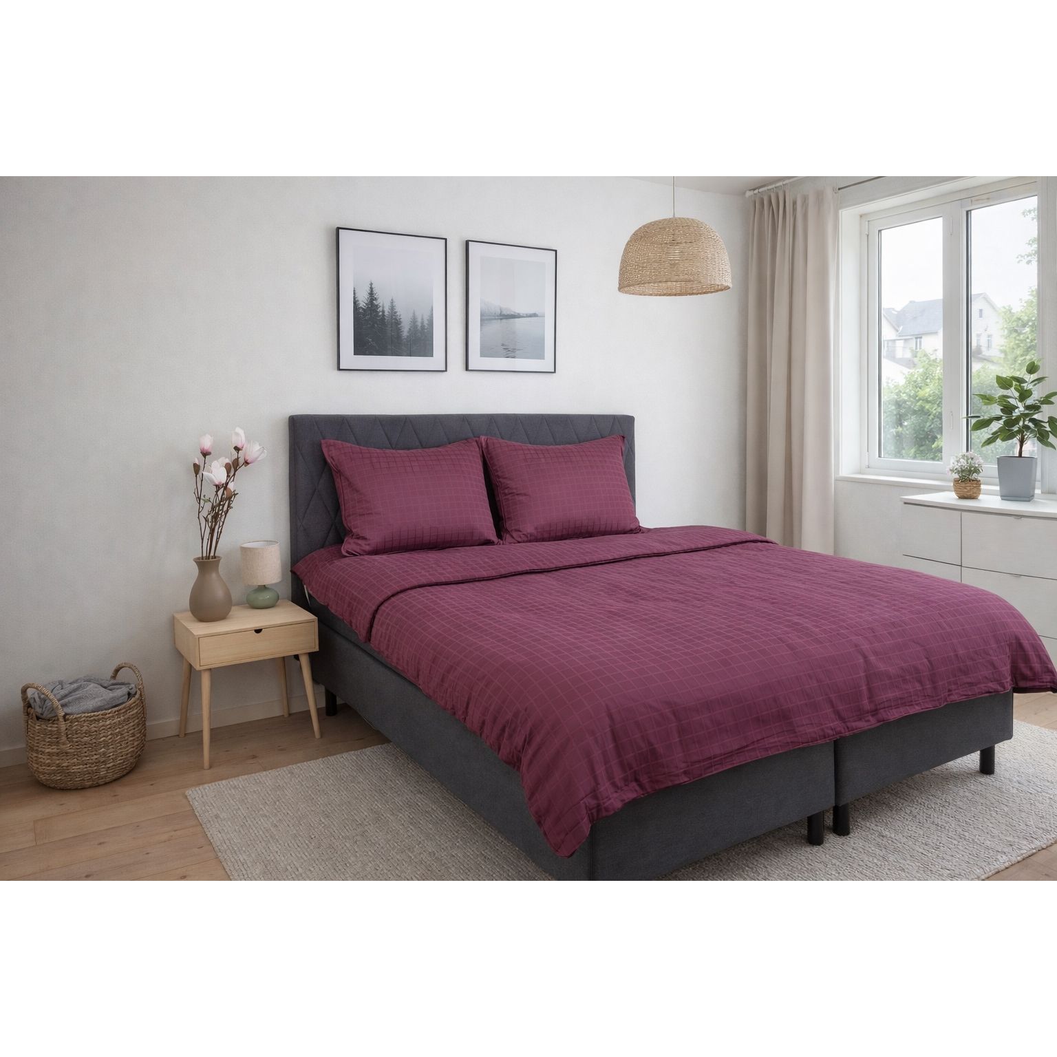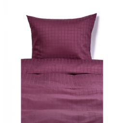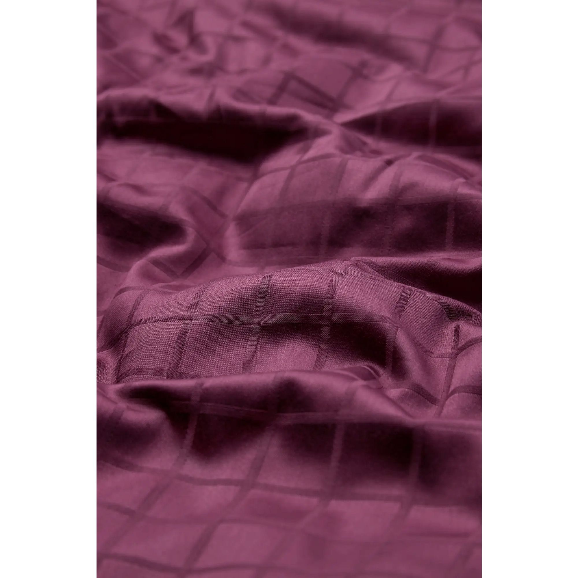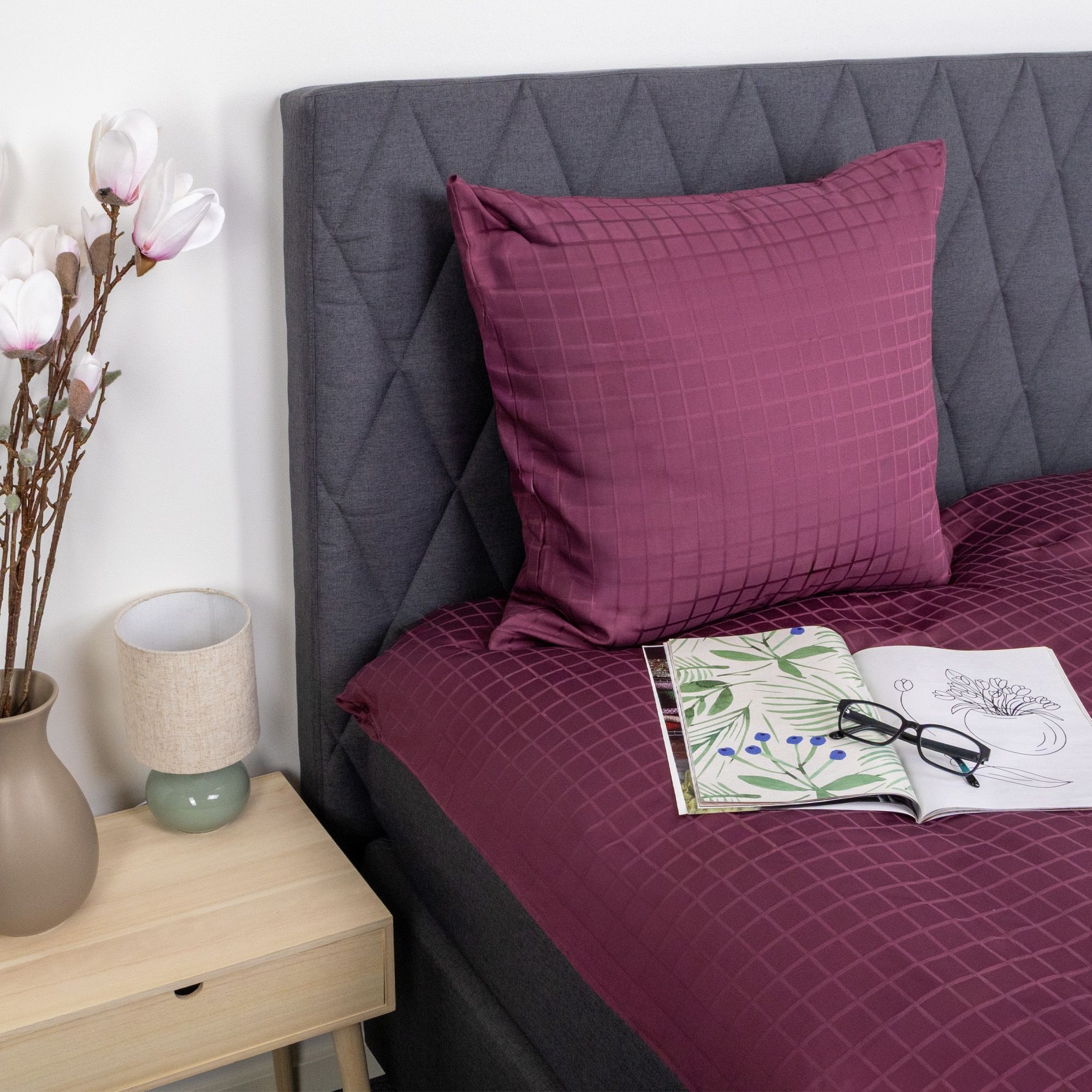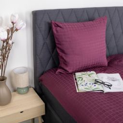 Det jacquardvævede ternede mønster er vævet direkte ind i stoffet og skaber struktur og dybde uden brug af print. Denne vævemetode sikrer, at mønsteret bevarer sit udtryk vask efter vask og giver sengetøjet et eksklusivt og gennemført look. Den mørke blomme farve understøtter det rolige design og passer let ind i både moderne og klassiske soveværelser.