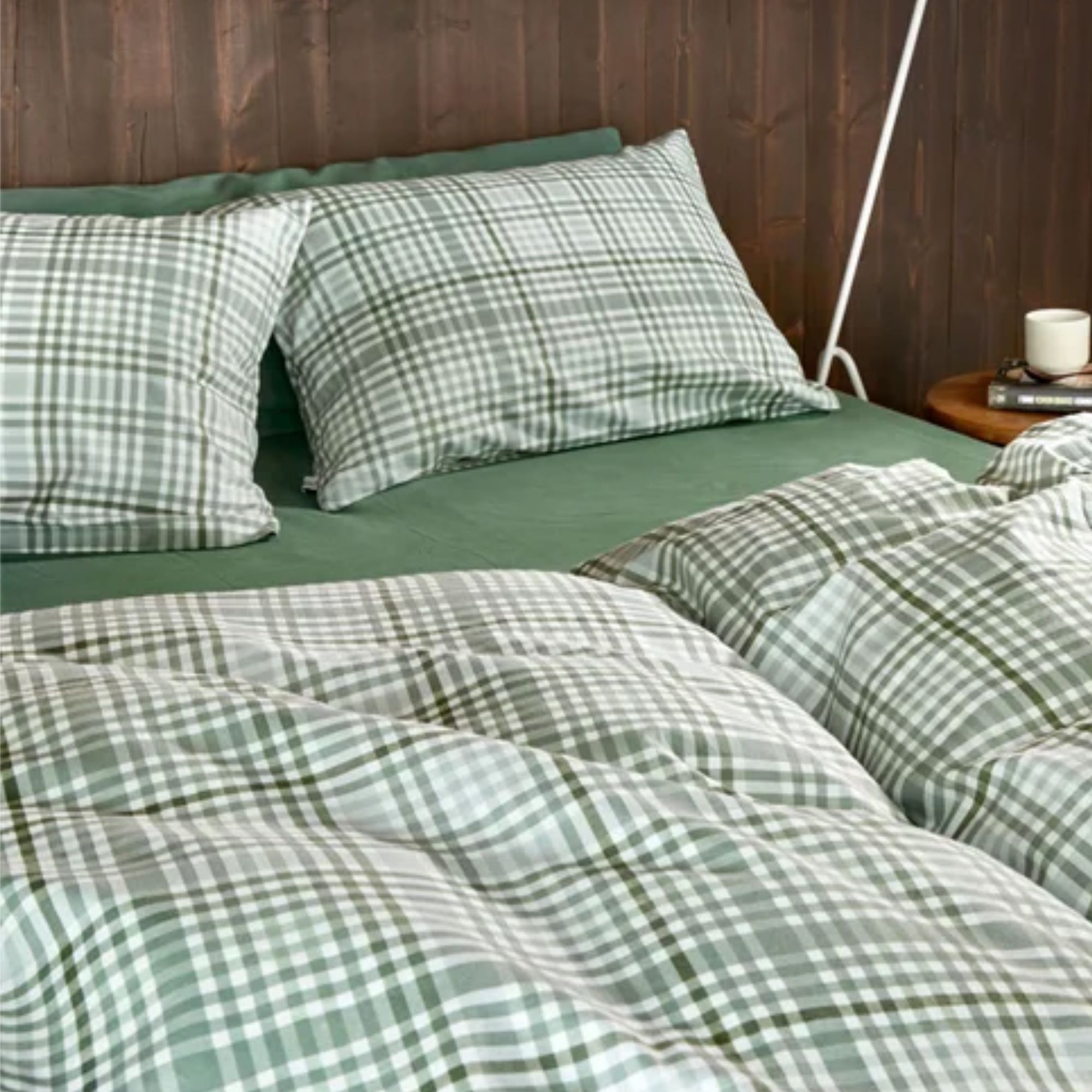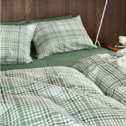 Sengetøj 140x200 cm - 100% bomuldsflonel - Høie of Scandinavia - David Dæmpet Grøn