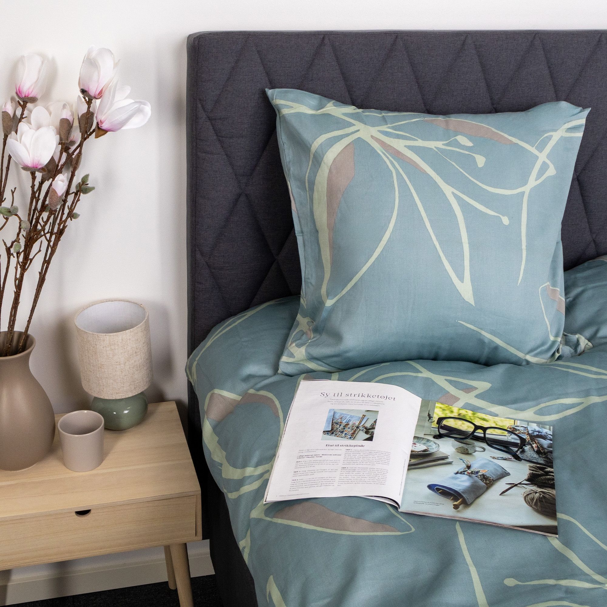 Bomuldssatin er et naturligt og åndbart materiale med gode fugtabsorberende egenskaber. Det hjælper med at regulere temperaturen og skaber et behageligt sovemiljø hele året rundt - uanset årstid.