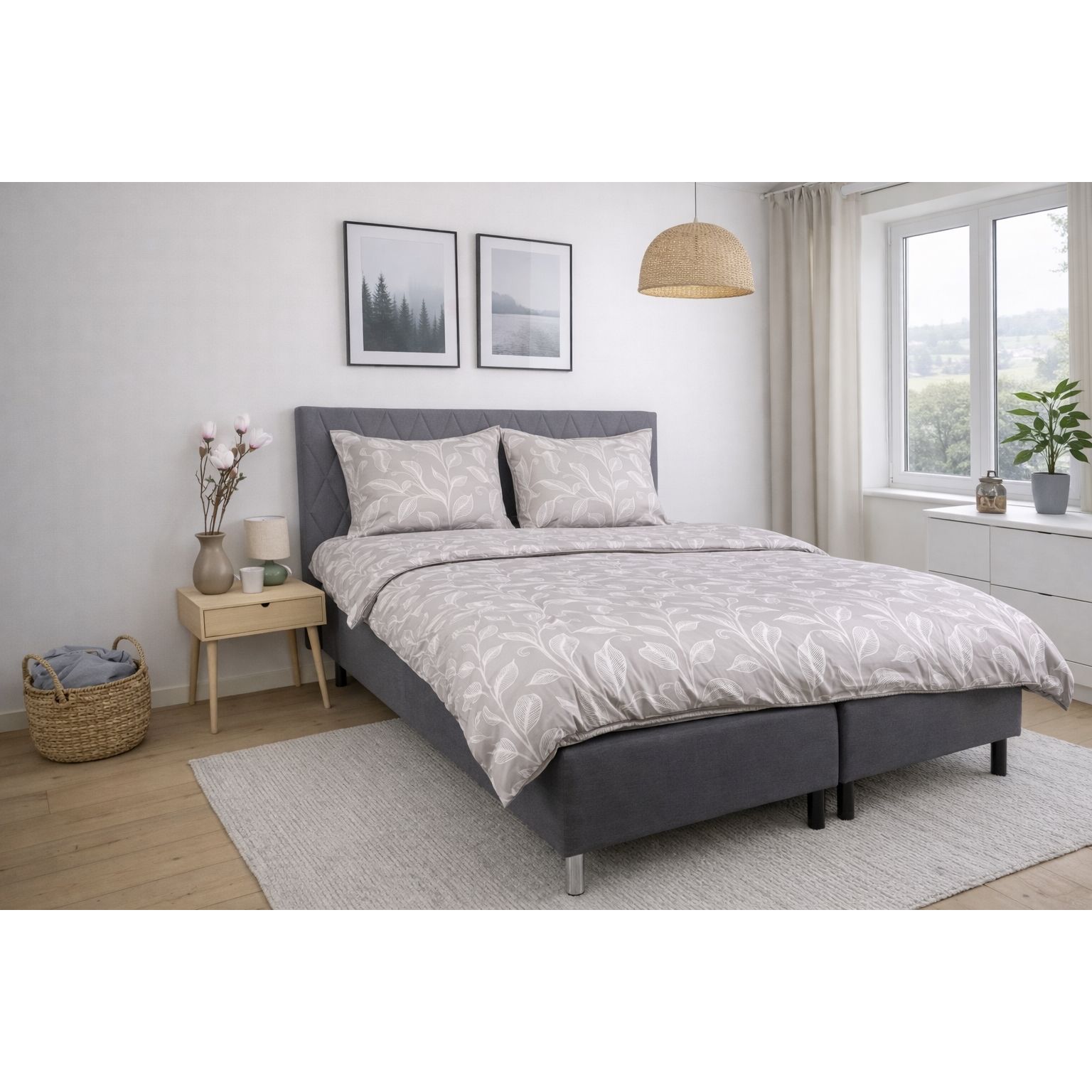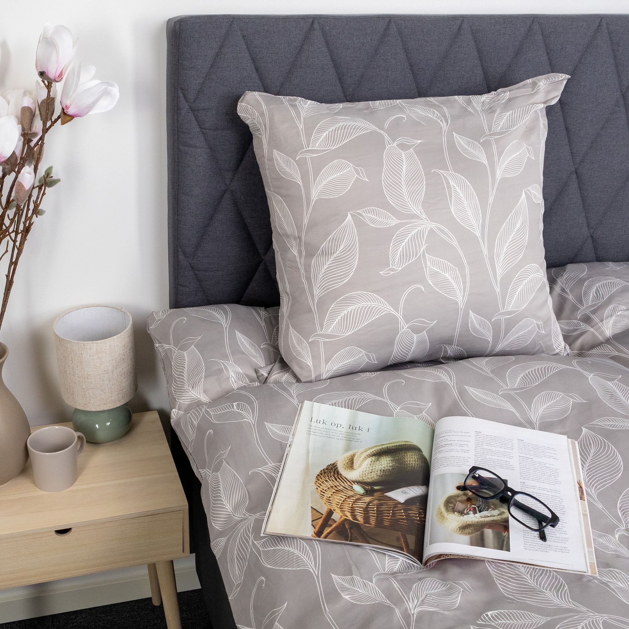 Sengetøj 140x200 cm - Satin - Sandfarvet print af blade