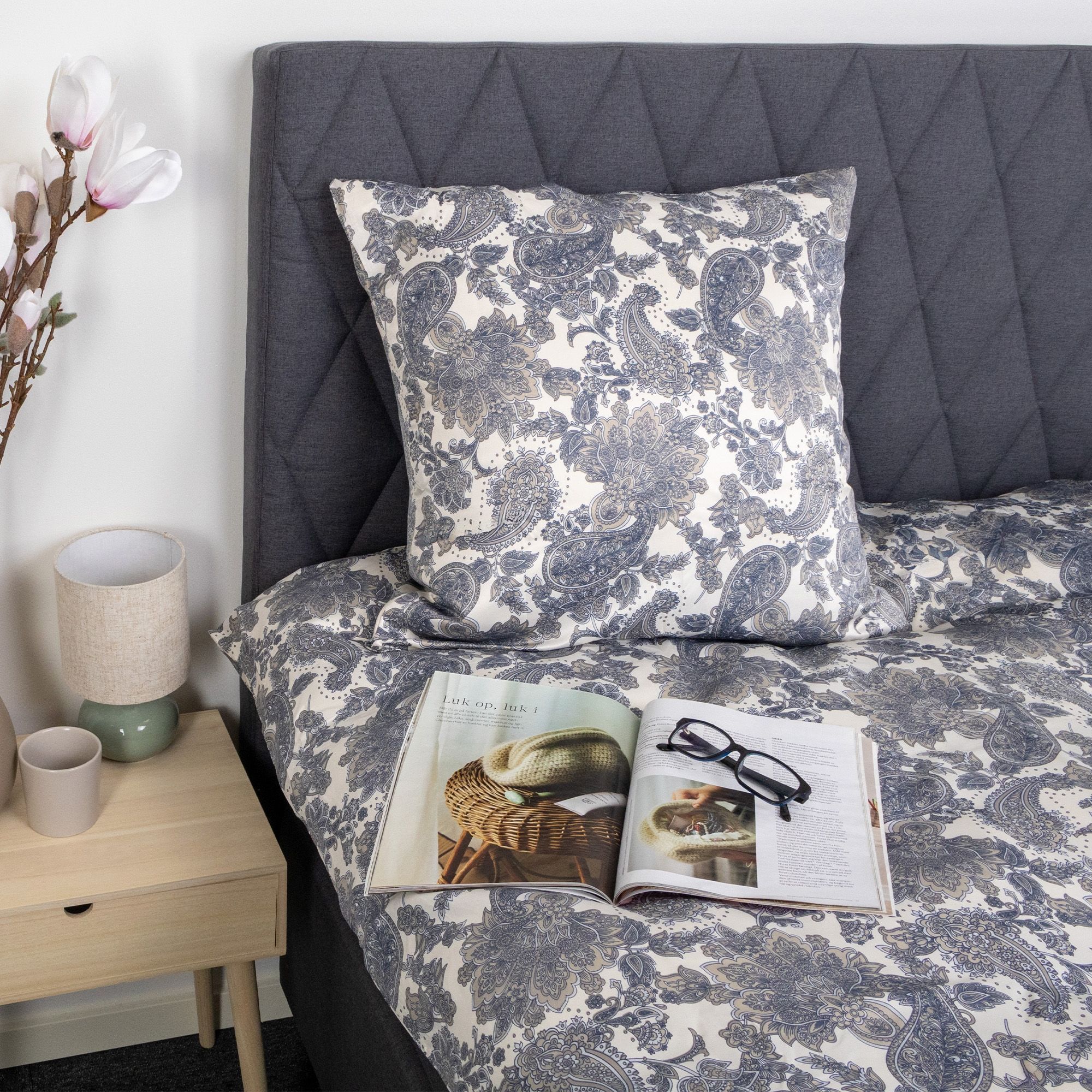 Sengetøj 140x200 cm - Satin - Sandfarvet blomstret design