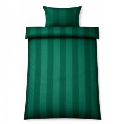 Sengetøj 140x200 cm - 100% bomuldssatin - Lone - Grønne jacquardvævet striber