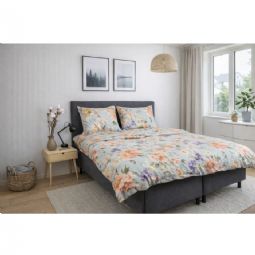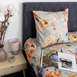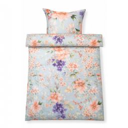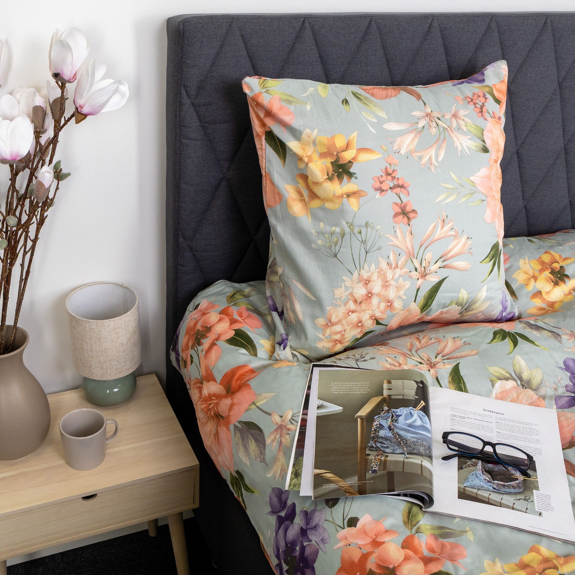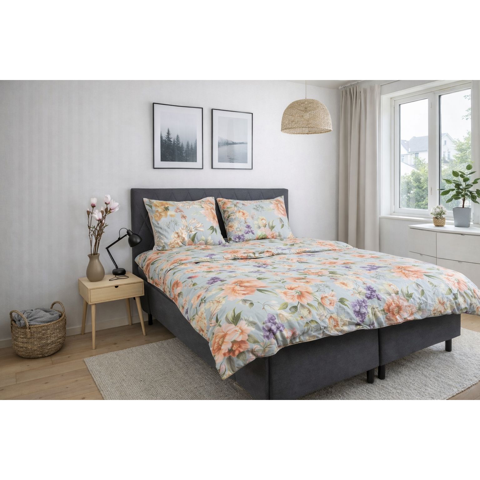 Sengetøj 140x200 cm - bomuldssatin - Summer Bloom - Lyseblåt blomster print